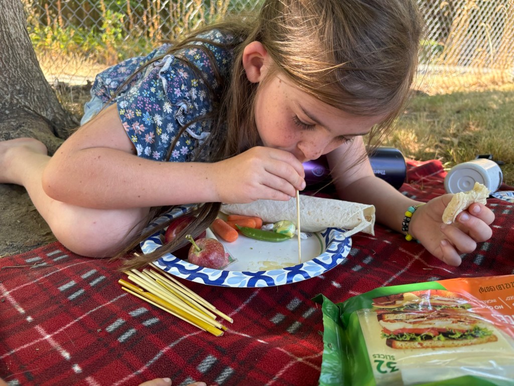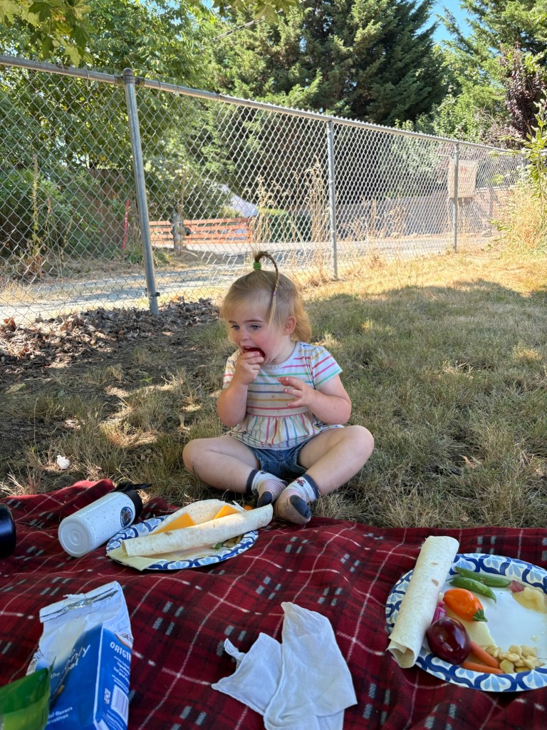 Nothing like a picnic for lunch. We take pictures to send to Mommy at work, and we usually call Grandma to talk as well.