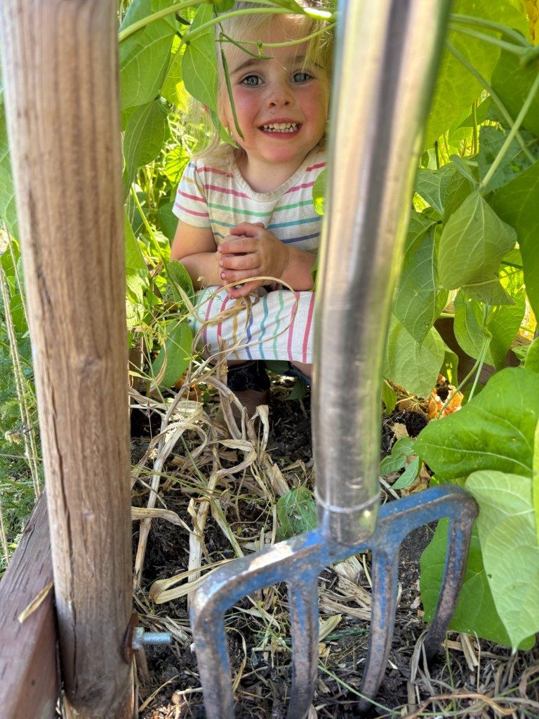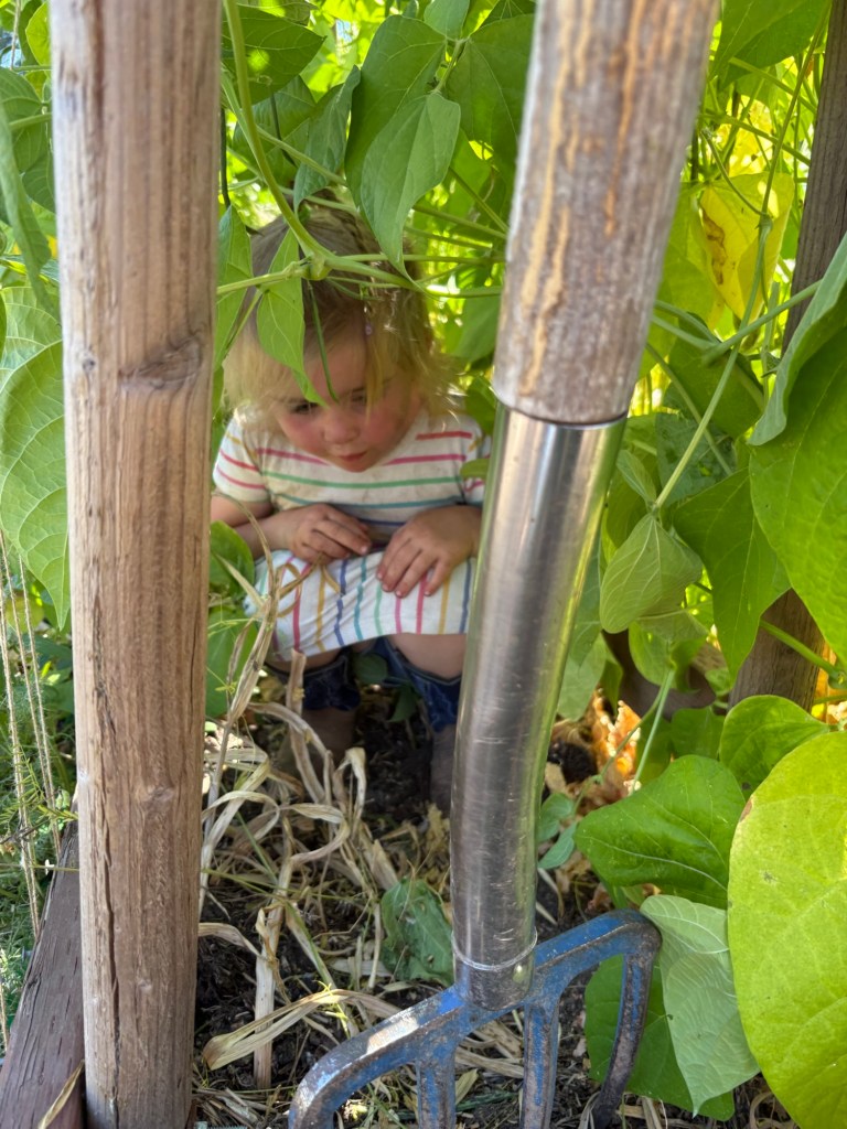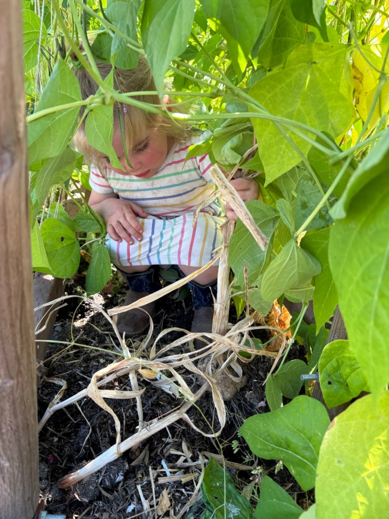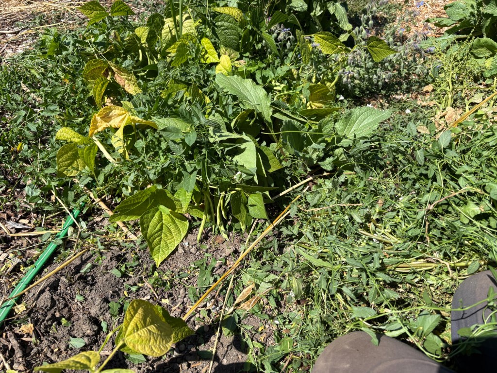 After the wheat was harvested the kids went to play and I tried to weed the cannellini beans. They did not get off to a good start, and then they more recently got overgrown with bind weed. Didn’t get very far on this.