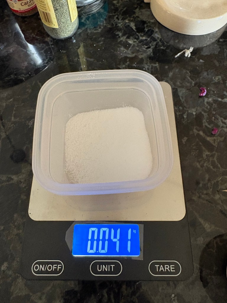 Plus 40 grams of salt (2% by weight)