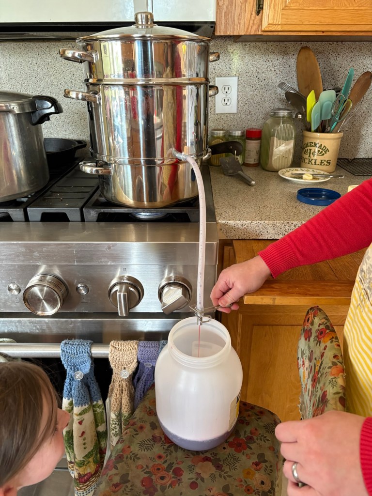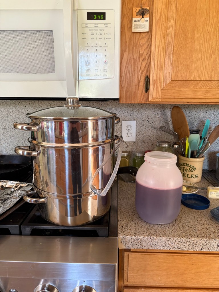 A couple of liters later, and this is ready to go in the freezer. After fair is over we can pull it out, thaw it, and make jelly out of it.