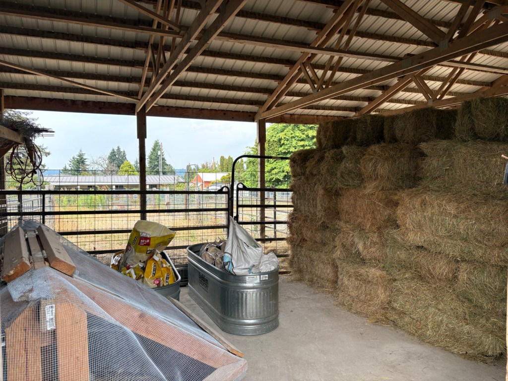 Sometimes the disorder gets too much, so we have to clean up a little. This happened recently when we bought a load of chicken and hog feed. Before we could unload it we had to re-organize a bit.
