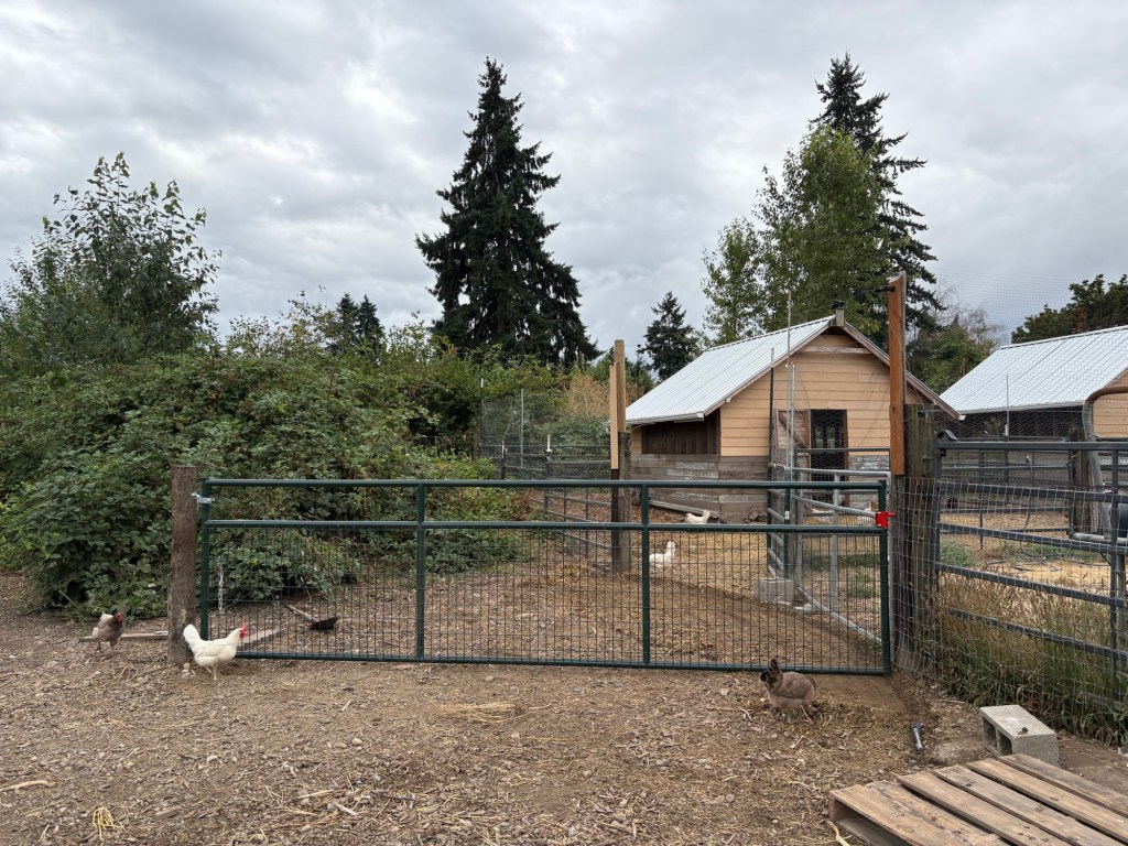 Now we have a gate that can guide the chickens into the south half of the south pasture…