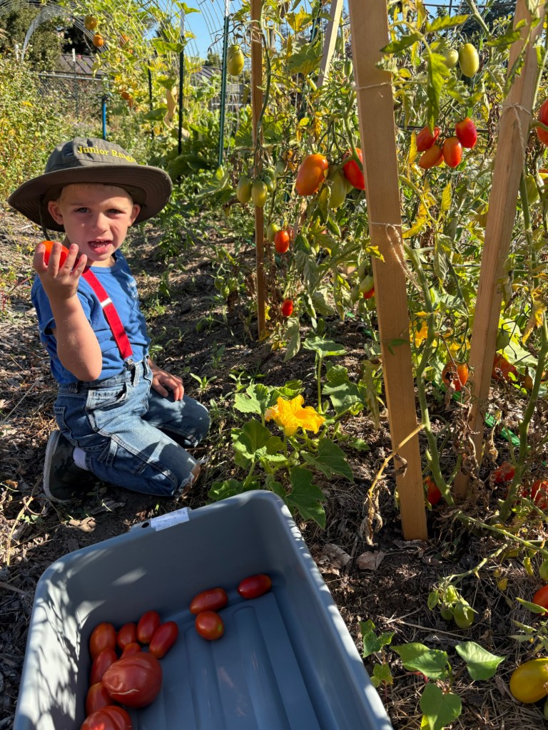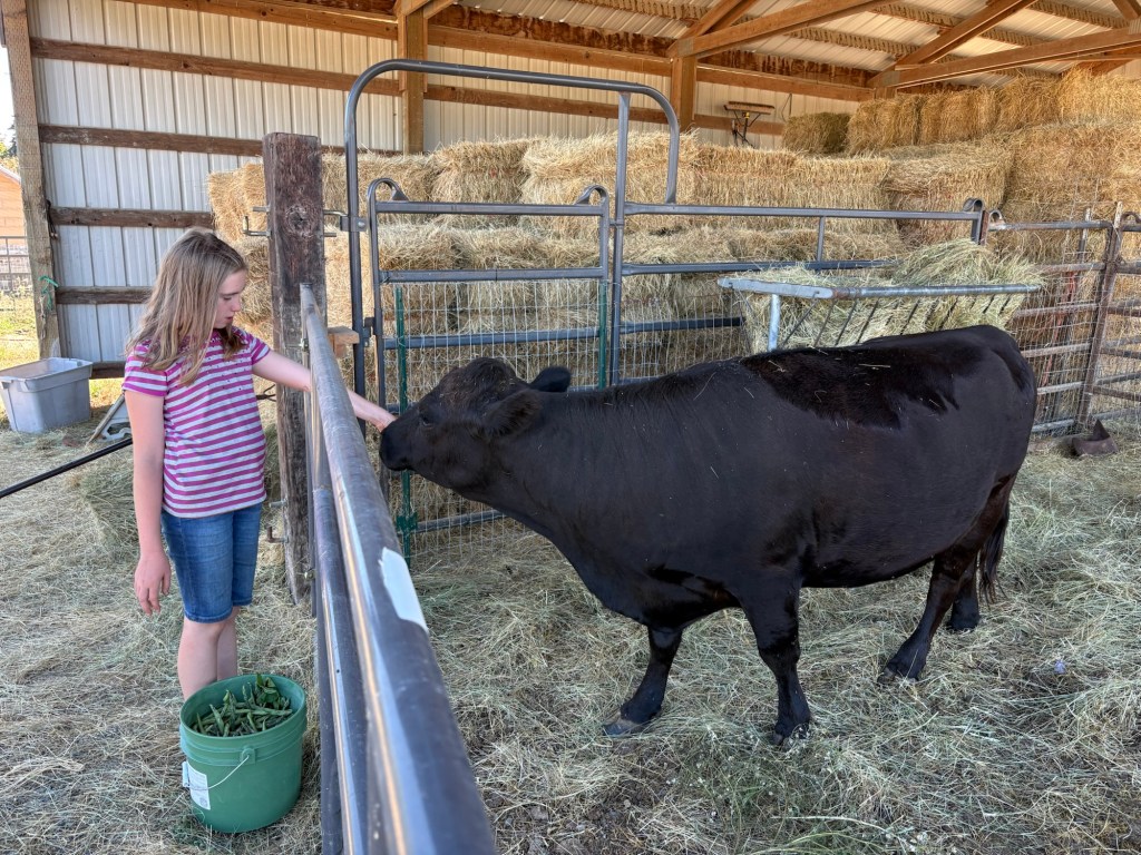 Iris enjoys reaping the benefits of all the garden weeding. One person’s weeds are another cow’s snacks.
