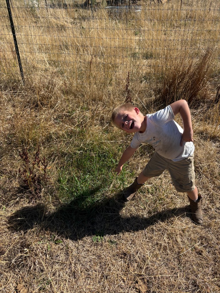 No, he has not been making his way out there and peeing in the pasture. That’s where the stock tank was sitting and water spilled there when we moved it. The difference between it and the surrounding area is incredible. That inch of rain tonight and tomorrow is going to be just the ticket for our thirsty pasture.
