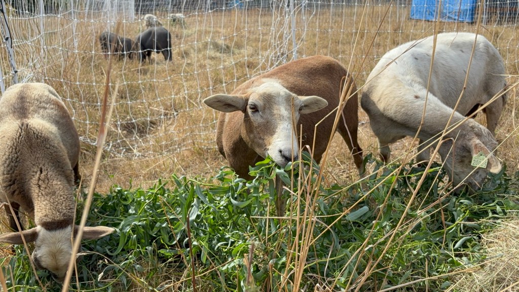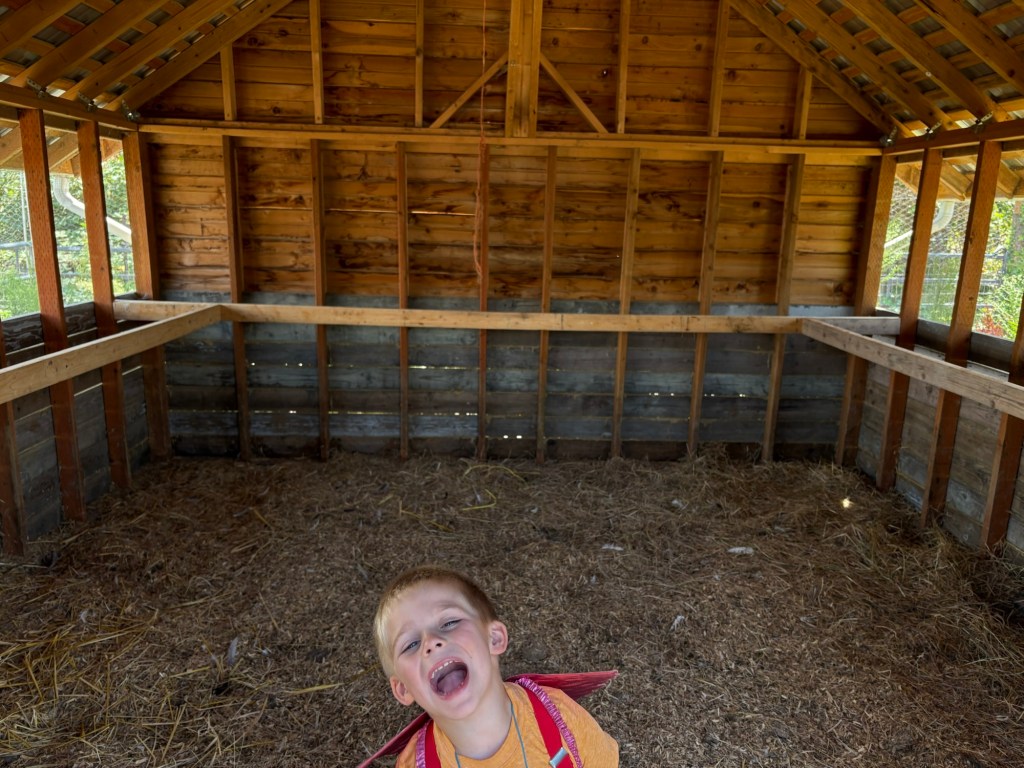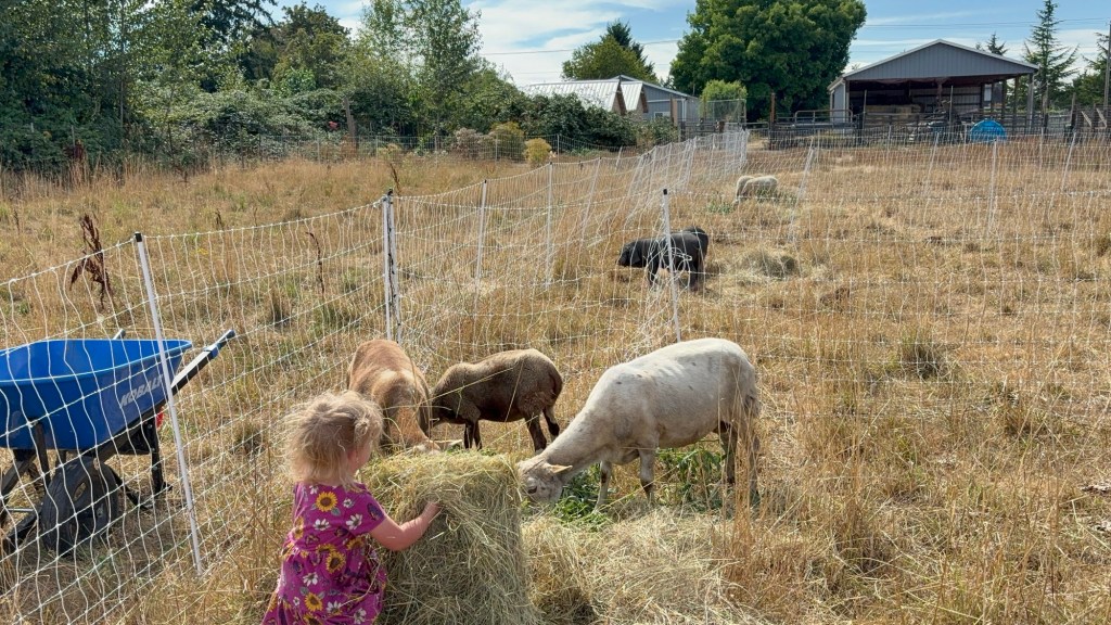 If they do not eat all their hay, Winnie picks it up and throws it on them and says, “Here, sheep! Eat your food!”