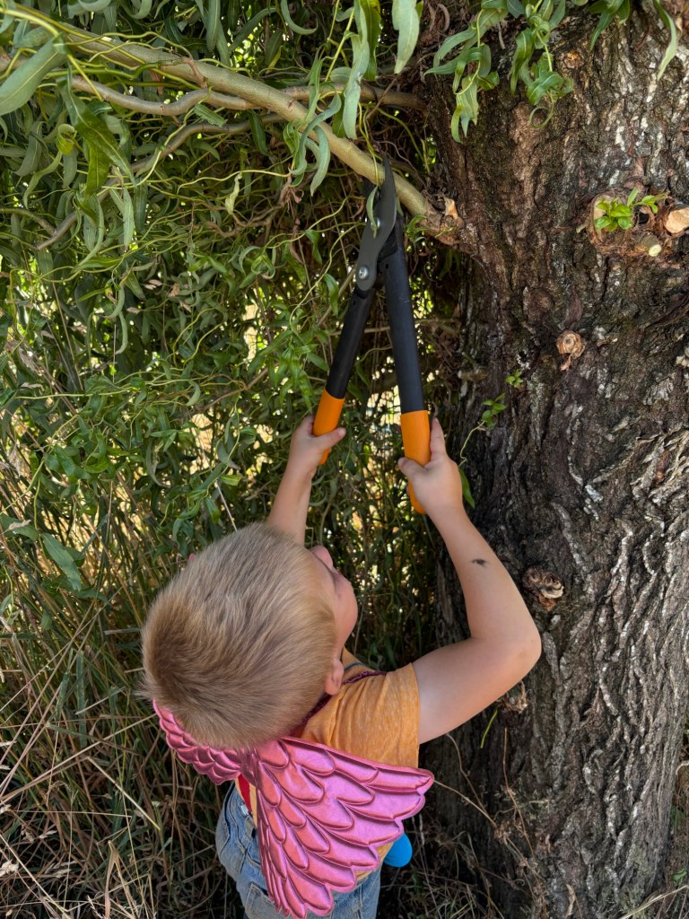 Next on our agenda was feeding the animals. Seppi loves cutting willow for the livestock.