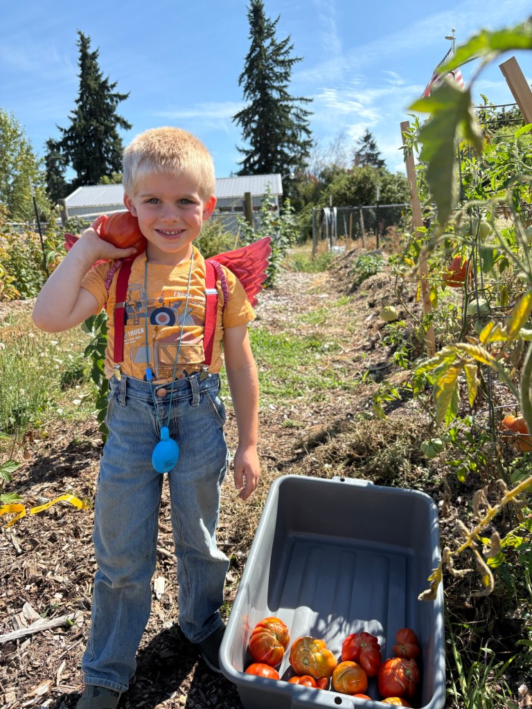 Next we took a trip to the garden to pick the tomatoes so they would not split and rot on the vine when they got an inch of rain in 24 hours.