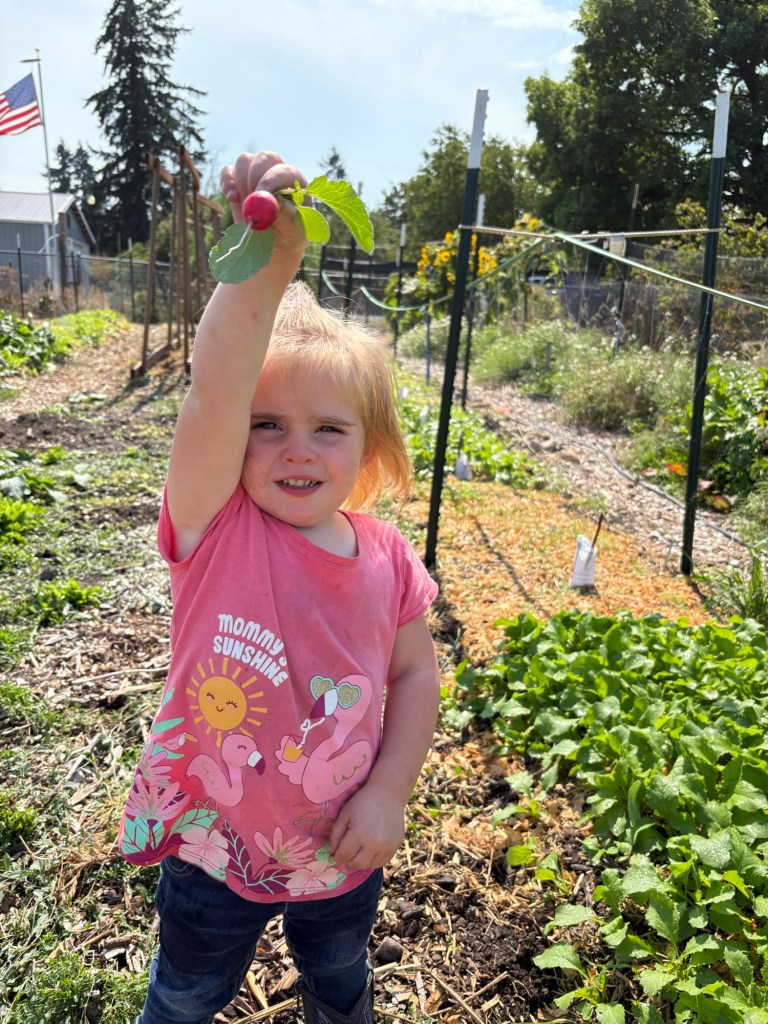 The giant haul of radishes, too much even for Daddy to eat in one sitting (without undesirable gastrointestinal consequences), we pickled. Daddy tried to learn how under Mommy’s watchful eye.
