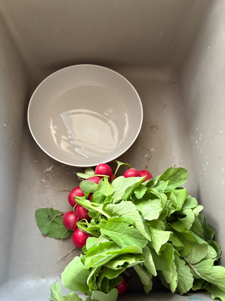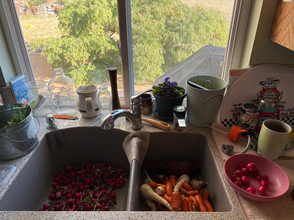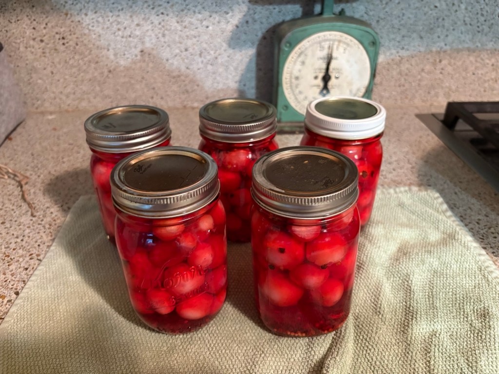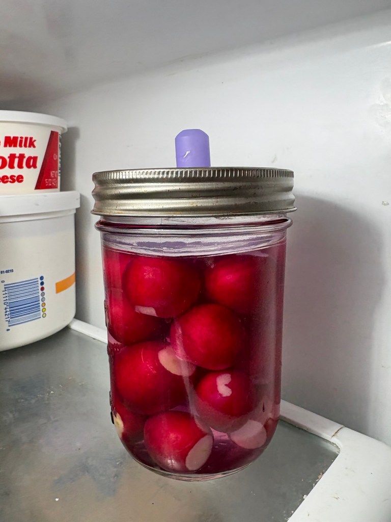 But eventually we had 5 pints of pickled radishes that should be ready to eat in October.