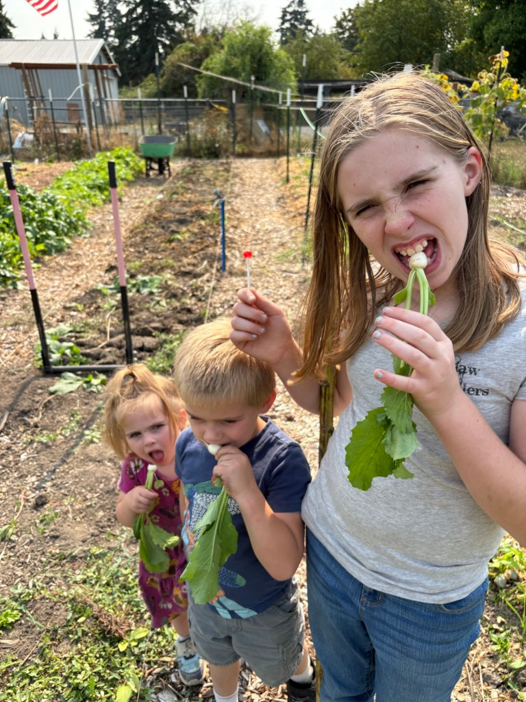 Baby turnips. Don’t knock it till you try it. They are sweet and delicately textured. If you want you can eat the whole thing from leaf tip to root.
