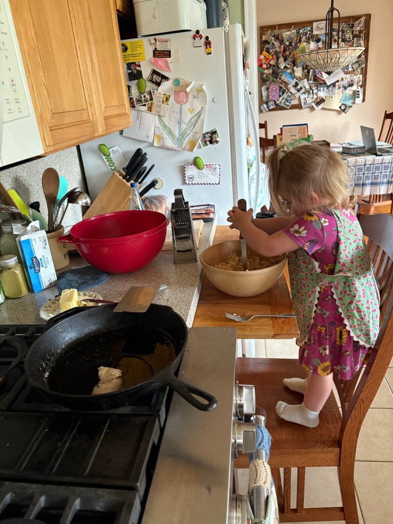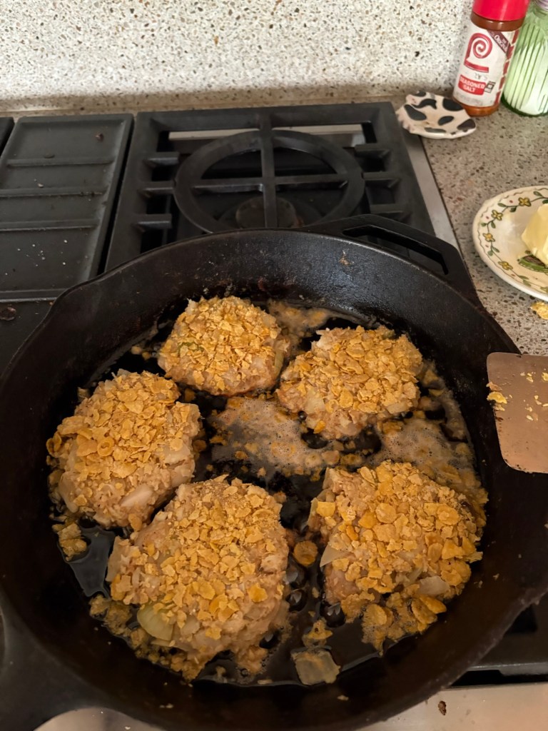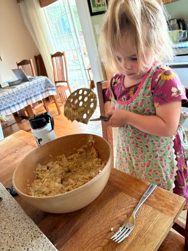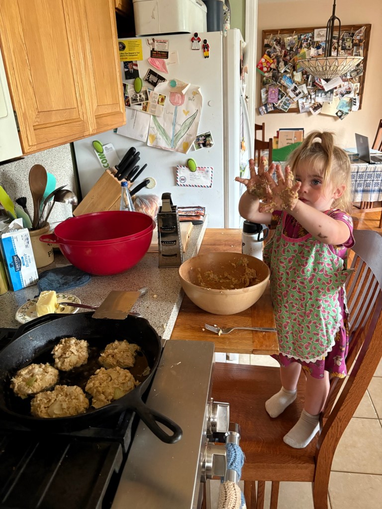 She did not like molding them into fritters. They were too sticky and she wanted to wash her hands right away.