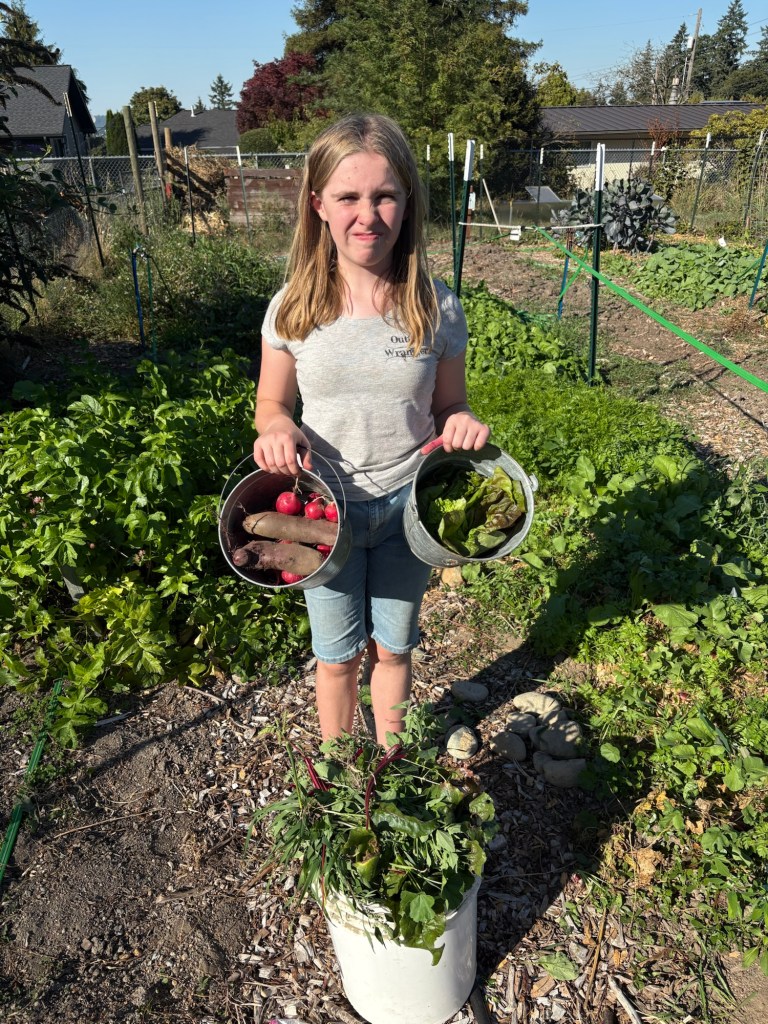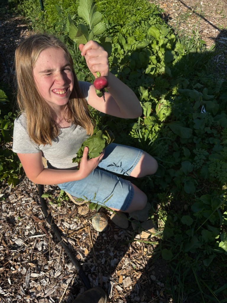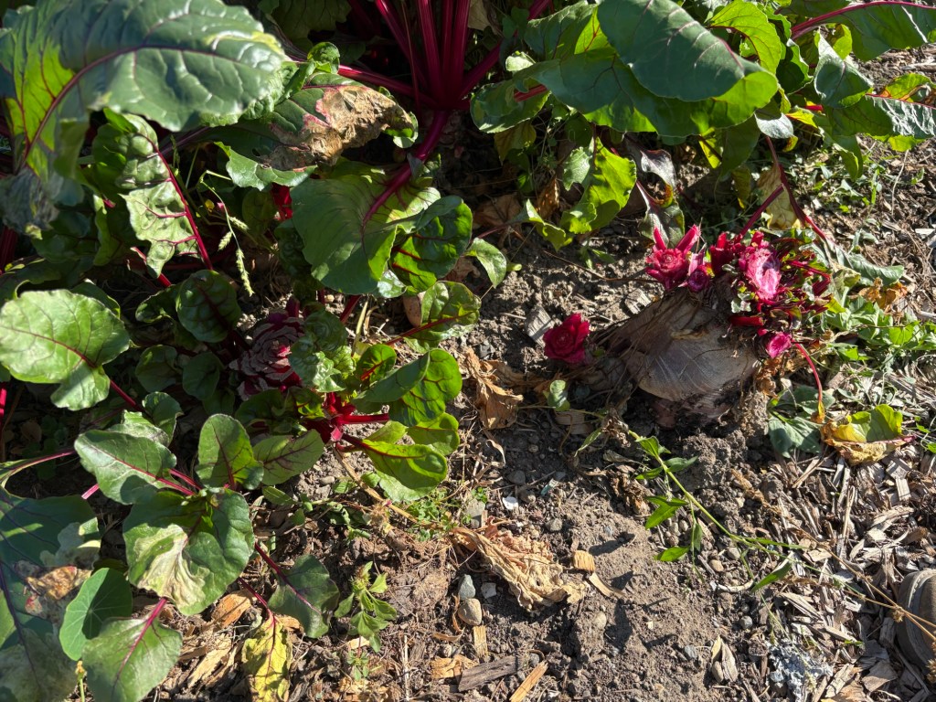 While we are at it we can pick beets and radishes for dinner. Even the weeds have their uses. Here is a pail of weeds, that will soon be a snack for our cow