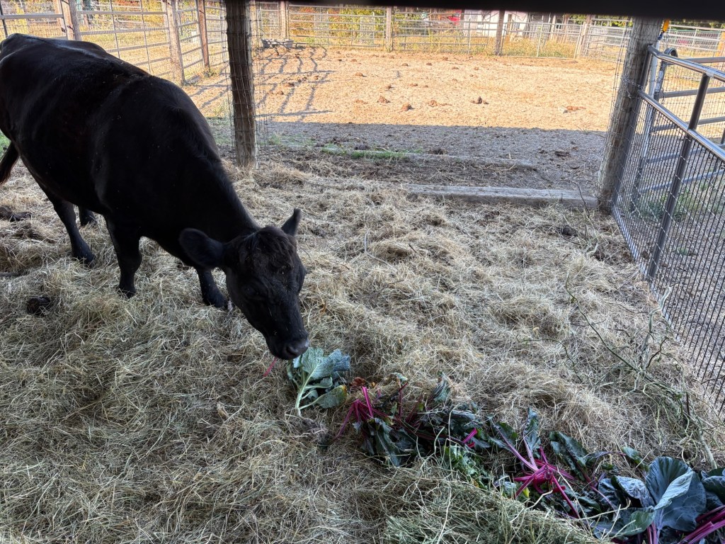 The pasture is dry, and the cool season grasses are not growing worth a darn. But we can still feed our animals, with leftover scraps from the garden.