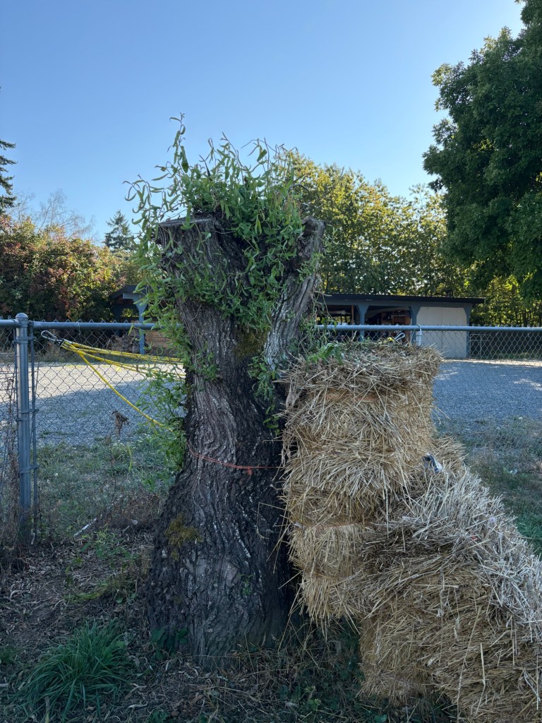 This willow tree is a marvel. Between it and our other pollarded willow it produced enough branches to feed the livestock, supplementing their hay, for a month and a half. We stripped it bare and look at it! Already re-growing new shoots for next year.