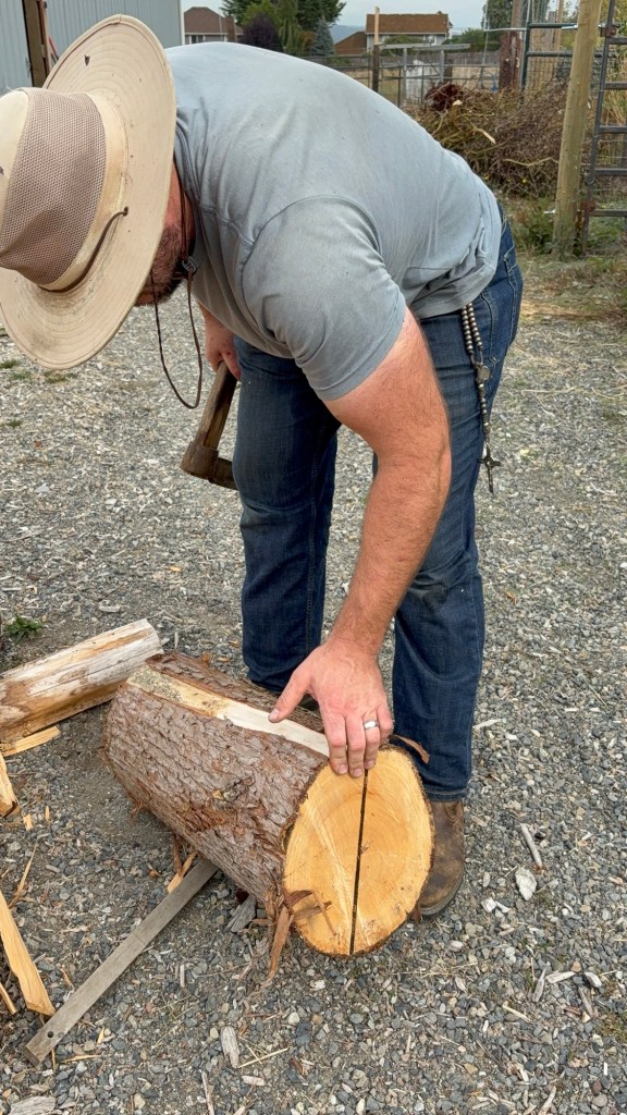 I tried to split a cedar log with it, but it was a lot harder than it looked on youtube. I figured out that it was due to a somewhat twisted grain in this log.
