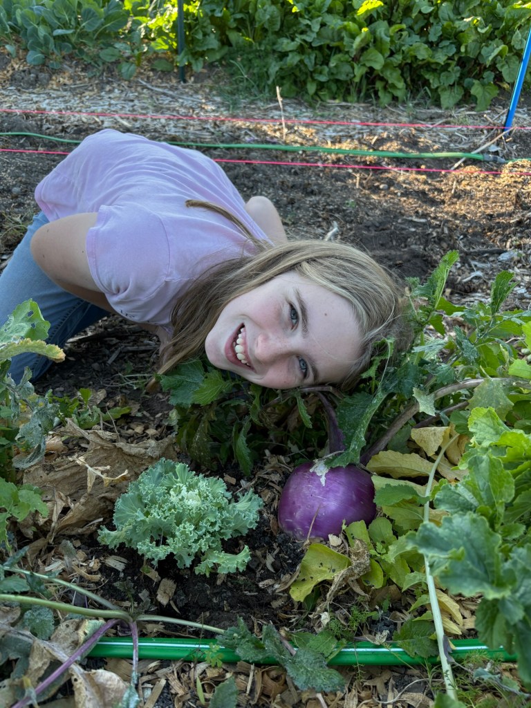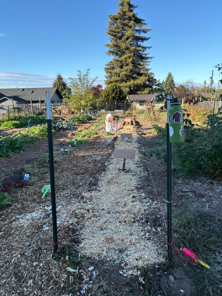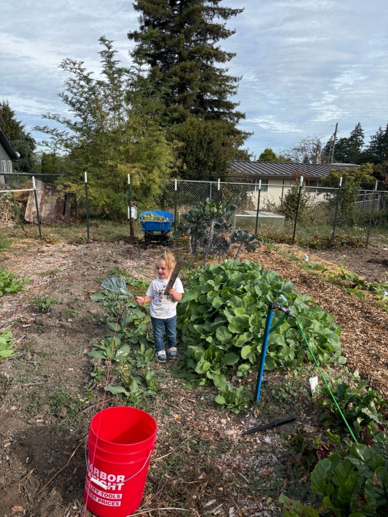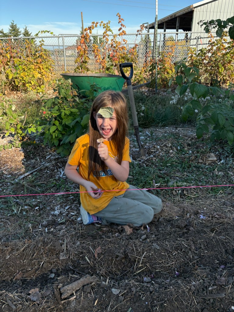Saturday was a busy garden day. Daddy and Winnie and Seppi got out there early, prepping last year’s legume row to be ready for winter wheat. Of course, we do not hold with muzzling the ox that treadeth out the grain. In other words, snacks for everyone in the garden.