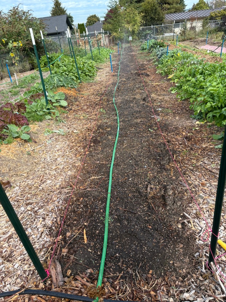 And soaked it in hard in the early morning when it was gray and cool, not realizing that it was going to get hot and dry in the afternoon and dried out the row. Now worries though, the rains started the next day, so God has been watering them for free.