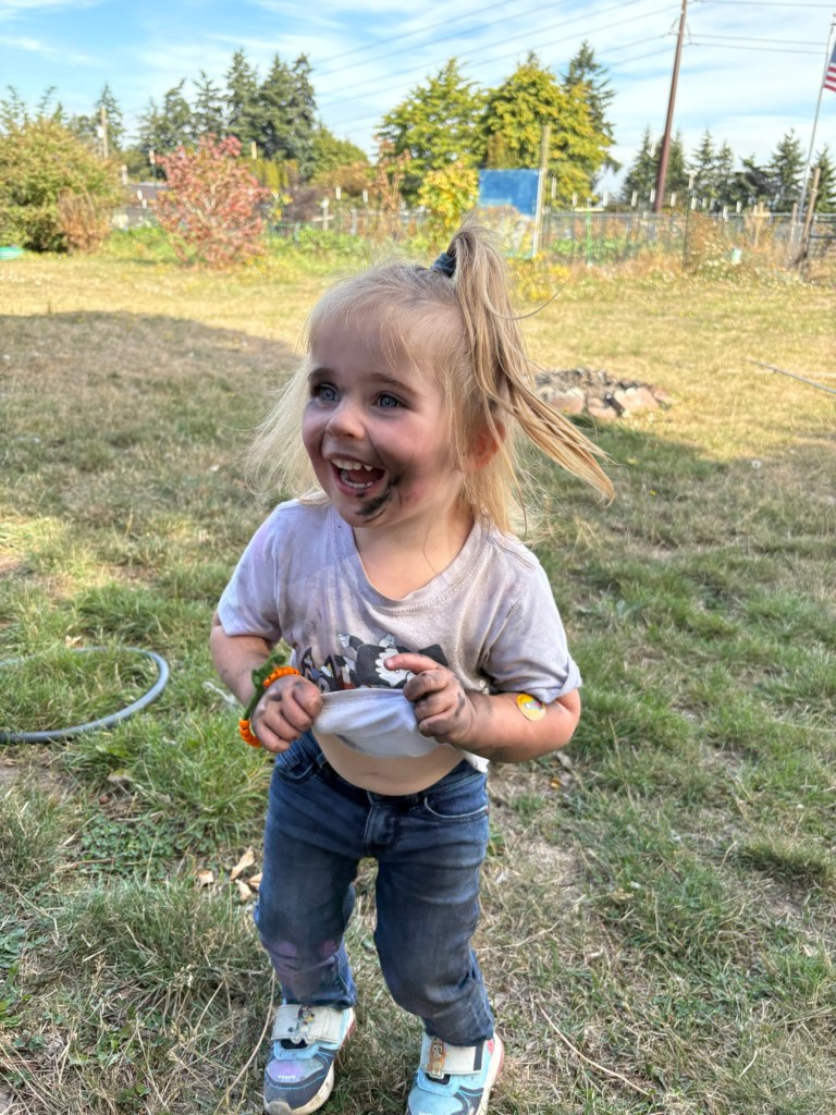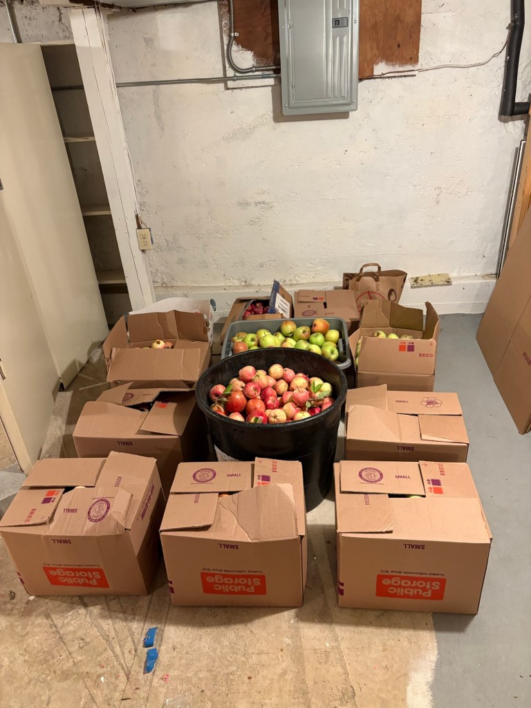 Mommy and the two older girls went down to Chehalis with some 4-H friends to pick more apples from an orchard down there. The freezers are all full, so this will be kept in the cool dark basement until the 18th.