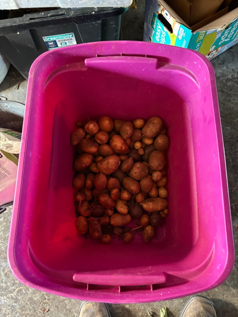 The next order of business was digging the last of the ‘tatoes.