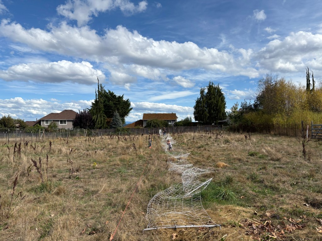 These longer sections of netting are extremely heavy and awkward to move. I will be so happy when we don’t need to use them anymore.