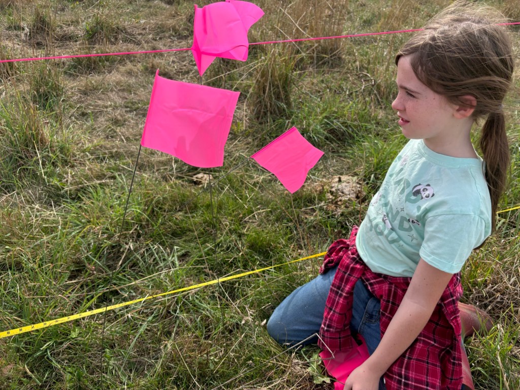 Tuesday after school we set out for the pasture to mark out the lines where the new fence is going to run.