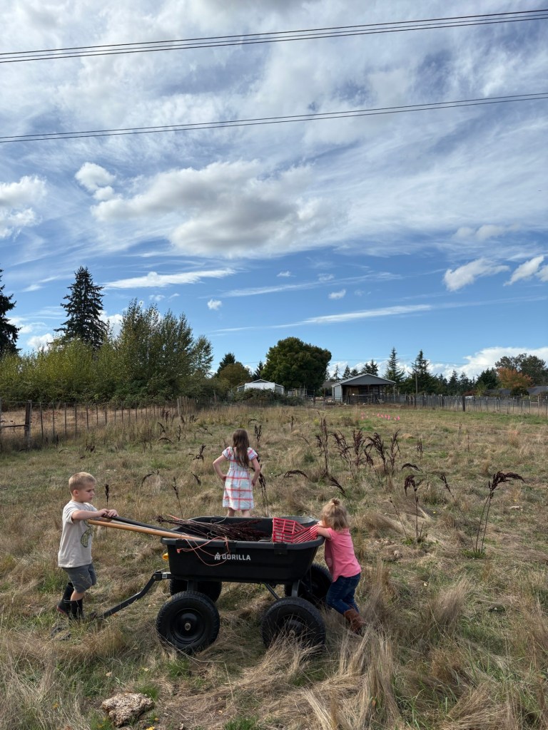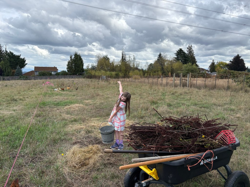So now, on to the saga of the curly dock. The next day was a work day for Daddy, so between patients I looked up pictures of the weed we had been cutting down, and discovered that it is not the dreaded tansy ragwort that everyone in Western Washington is all stressed about. (In the process I verified what tansy ragwort looks like. We do have a few plants here and there, but nothing like so much as we had of the tall brown weed.)
