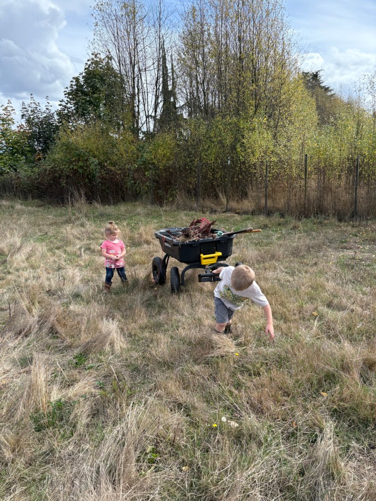This will hopefully encourage them to stomp and root organic matter into the ground. However, with the pigs, there is an added challenge.
