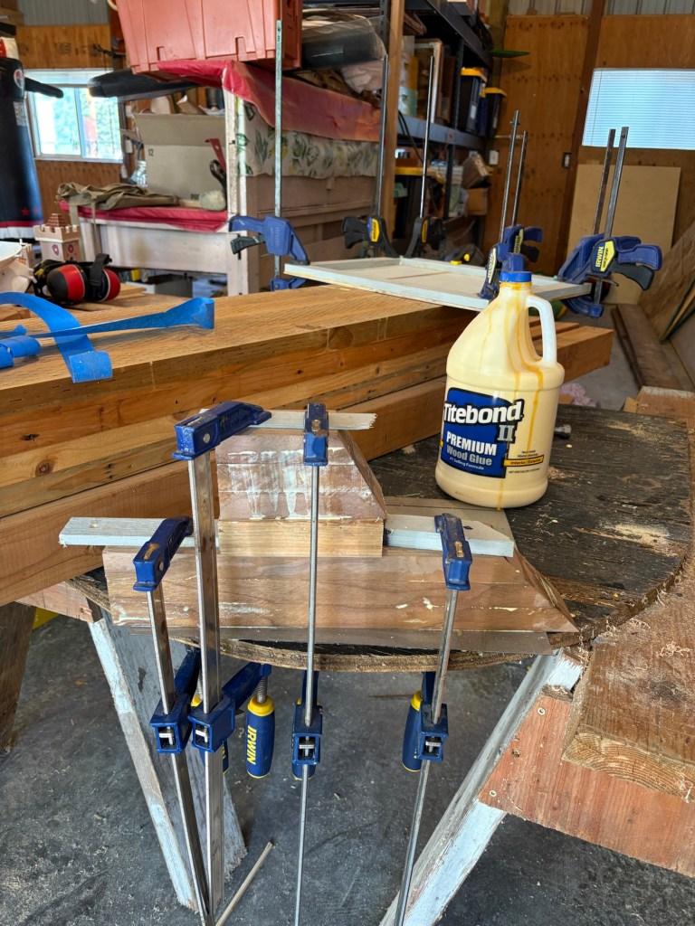 It was not a long project, and made easier by my new table saw miter guide. Cutting and gluing the frame to the backing only took a couple of hours (that works out to a couple of days in homeschooling time).