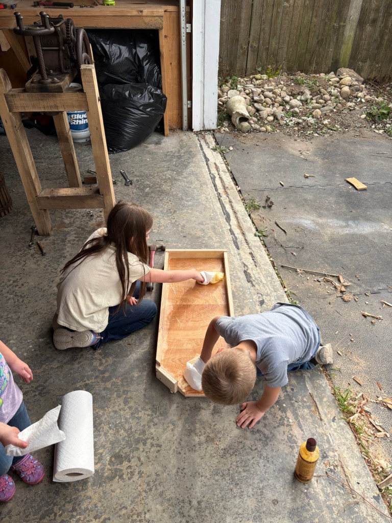So I set the kids to finishing it, and built a stringer.