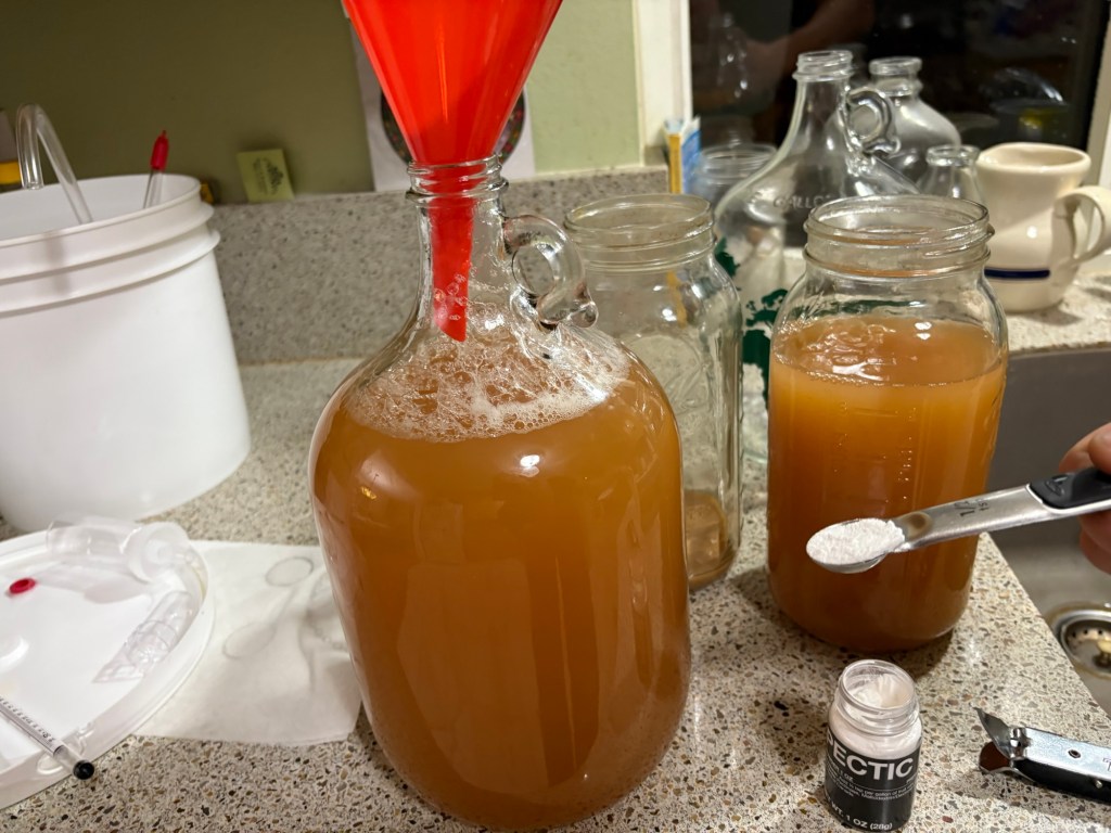 So we sterilized the glass 1 gallon jugs and all the equipment with a no-rinse oxidizer and scalding hot water.