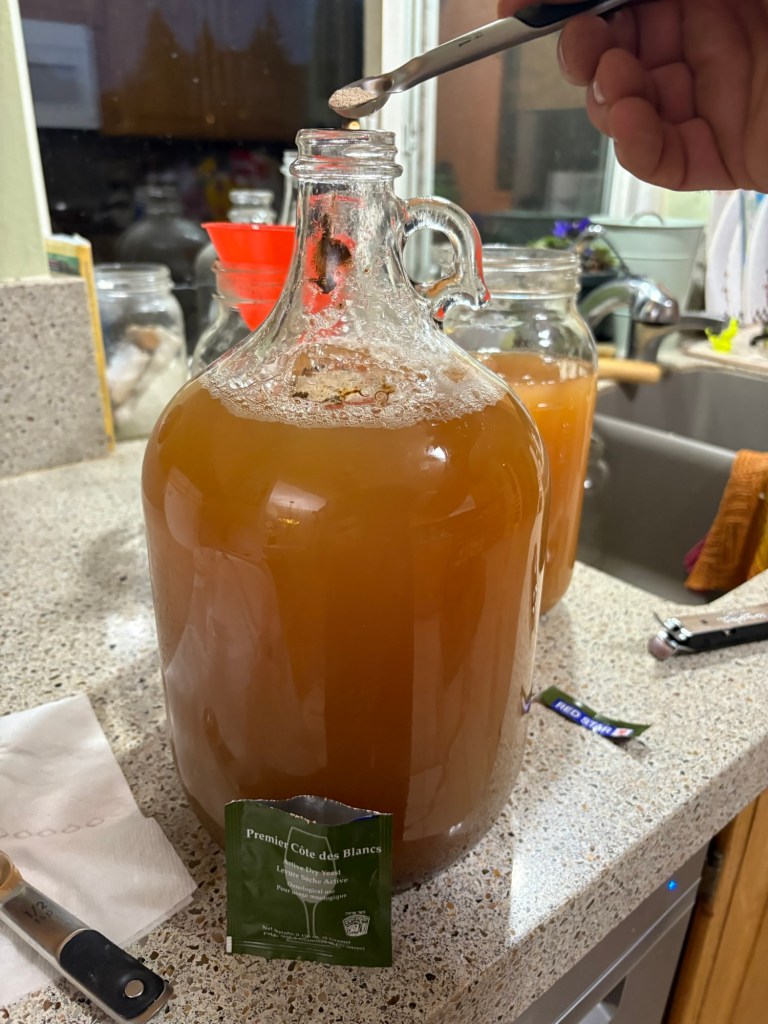 Cider doesn’t always have all the vitamins that yeast likes to have available, unlike wine, so I added some yeast nutrients.