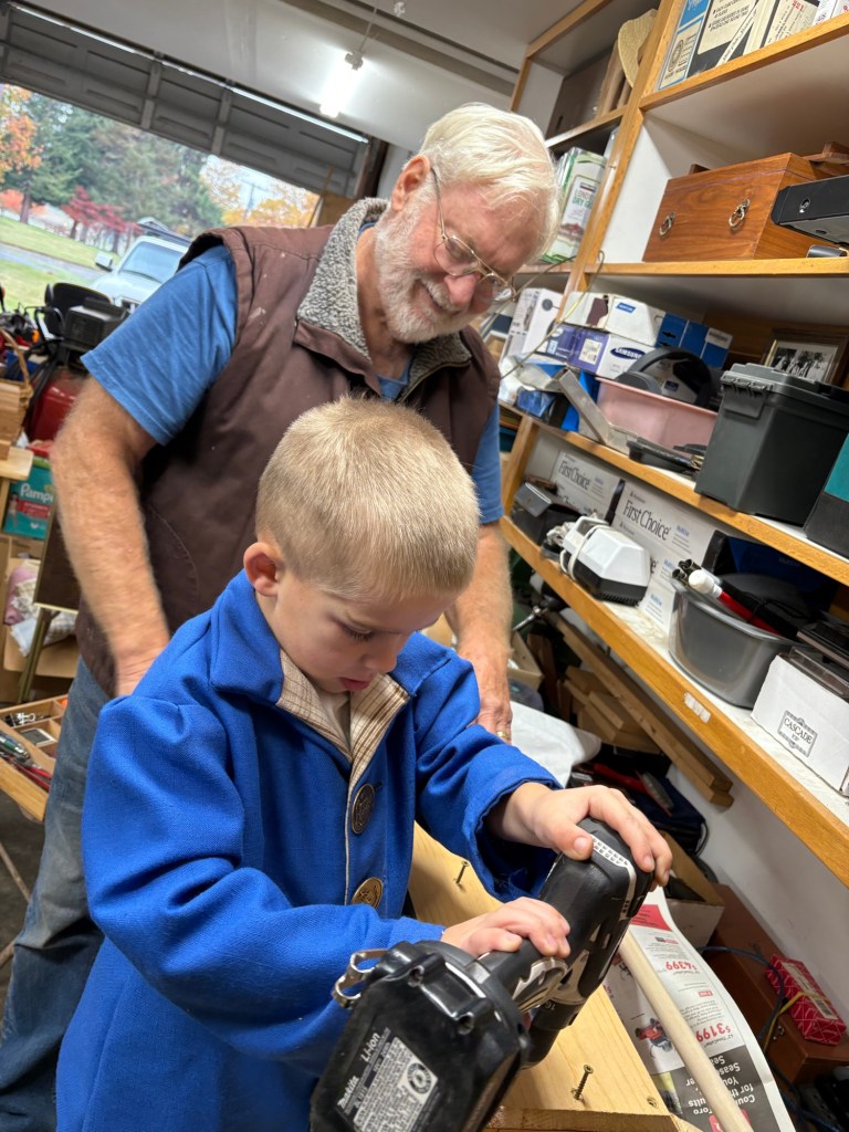 Halloween we were up at Enumclaw in Papa’s shop. Seppi wanted to finish this with Papa, so we brought all the pieces up.