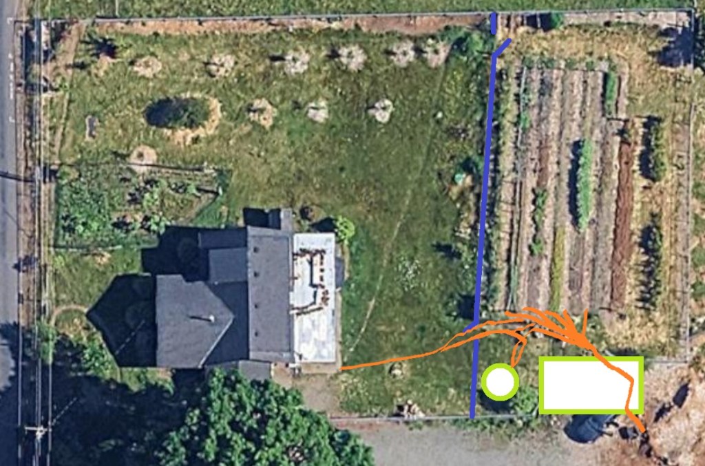 It is going to be a straight line. Like it probably should have been at the start. Also shown on the map above are the future locations of the herb garden/Holy Family statue (green circle) and greenhouse/tool shed (Green rectangle). But we are getting ahead of ourselves.