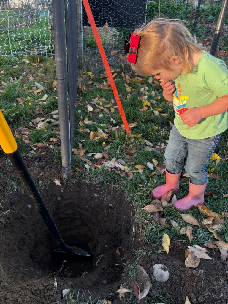 Fortunately, he got to help un-dig the hole, which is almost as much fun and a lot faster.