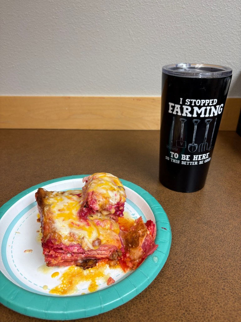 This was a special treat at work, Deeper’n’ever’turnip’n’tater’beetroot pie. Mommy made it for Ellie’s Redwall birthday party, and there was about half the pan left, so Daddy had it warmed over for lunch, two days in a row. Bo urr, this yurr’ll put a shoin to thoi fur and make thoi diggin’ claws gurtly powerful.