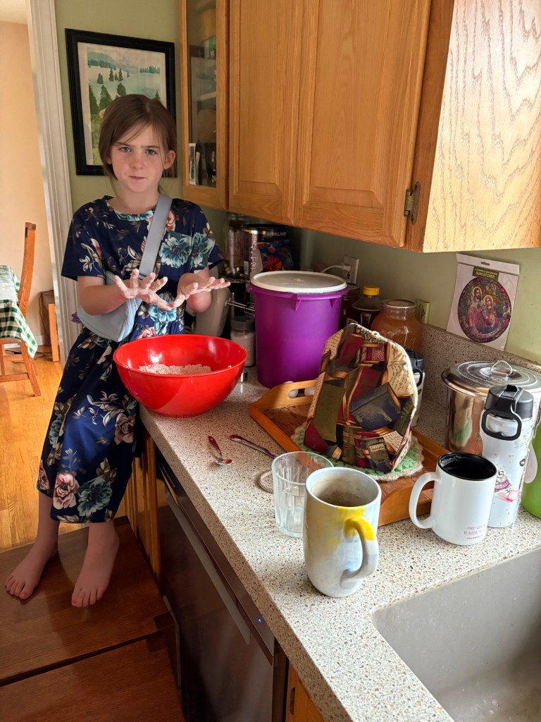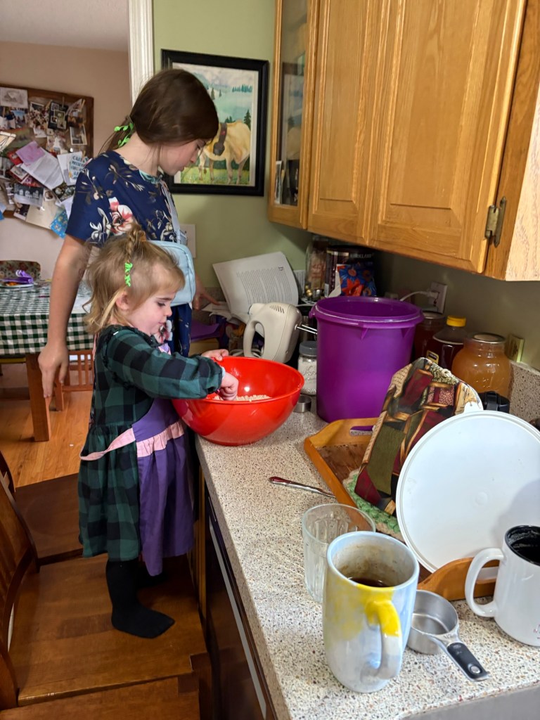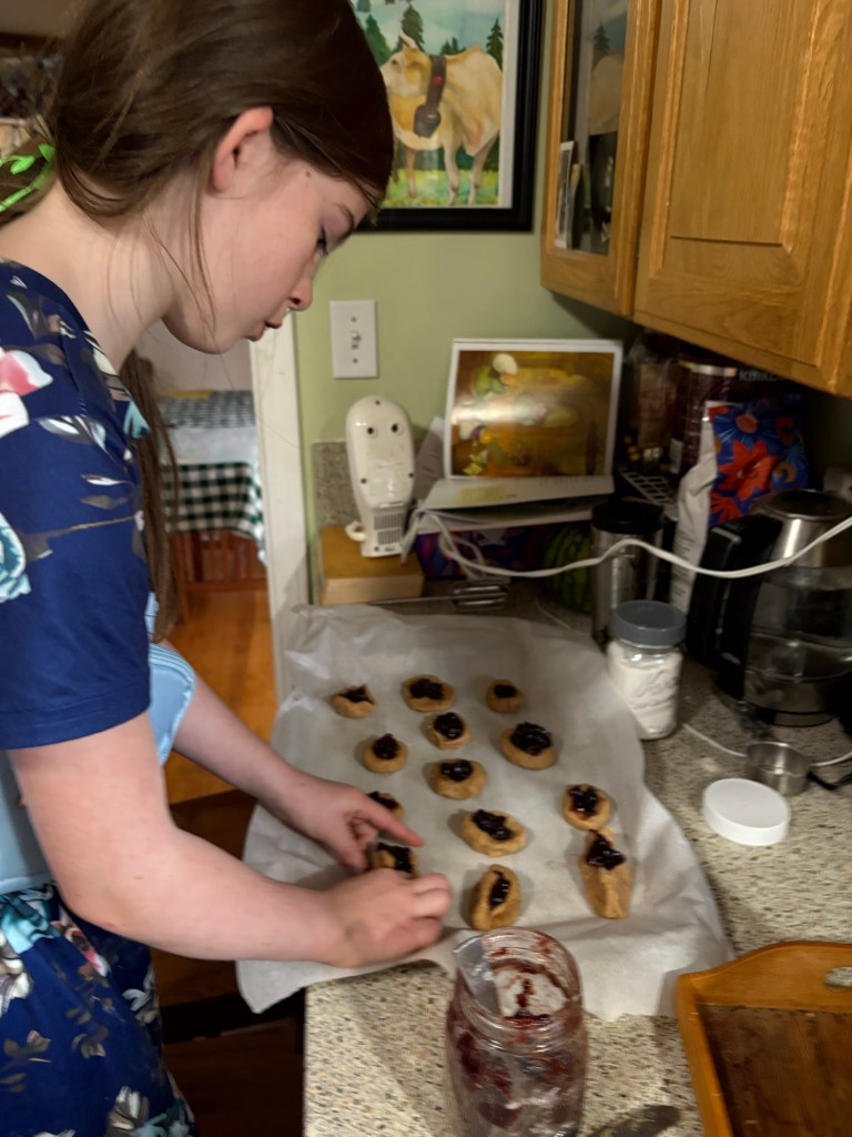 Sunday was a relaxing home day. Ellie baked some Rosie Rock Jelly Biscuits (from the Redwall Cookbook, of course.)
