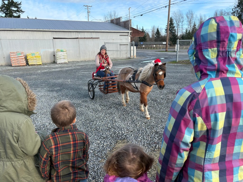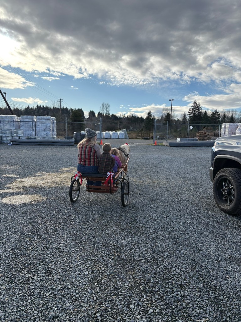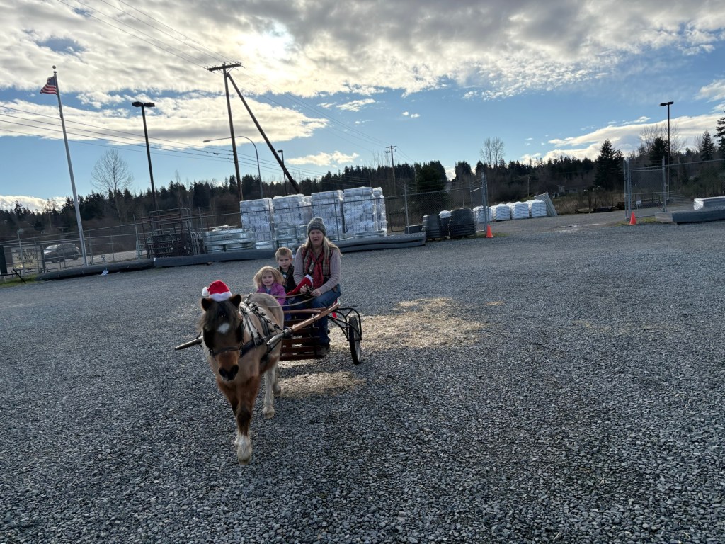 This lady happened to be there with her pony named Taco, and gave the two little ones a quick ride around the parking lot in her pony cart, which the kids loved.