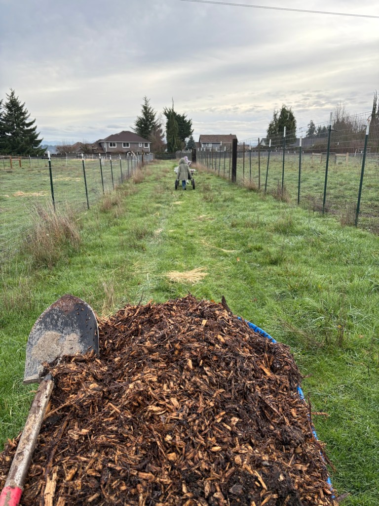 Evie and Ellie came out to the very back northeast corner of the pasture, in the laneway behind the food hedge where the great big pile of stones the previous owners left is there.