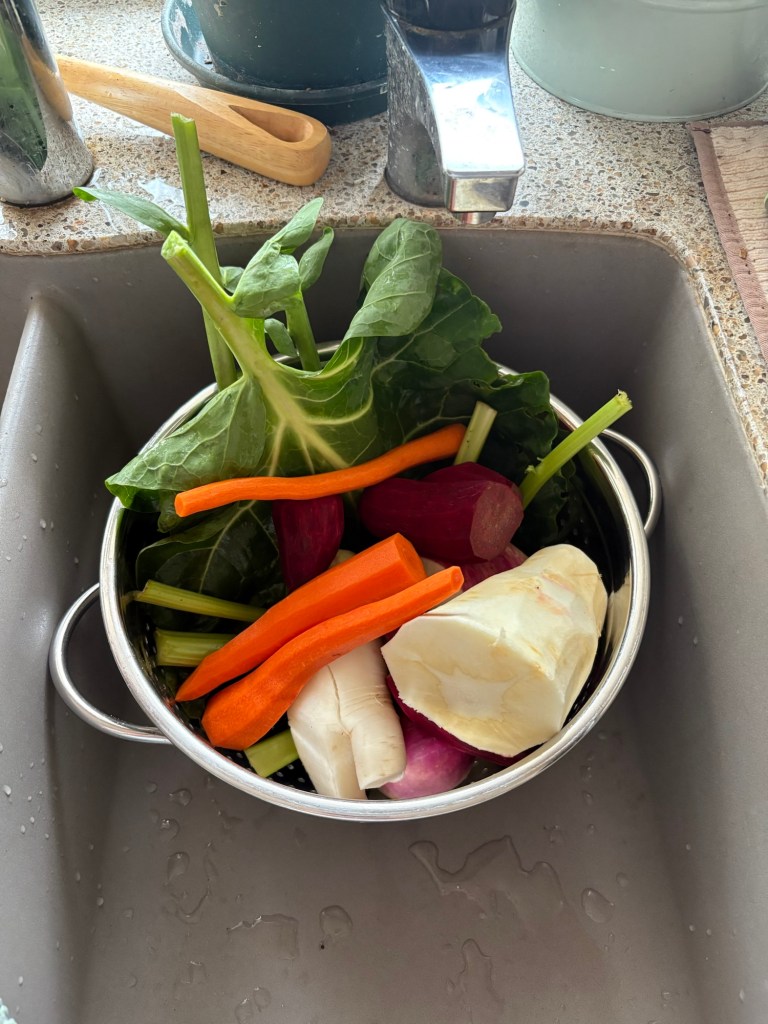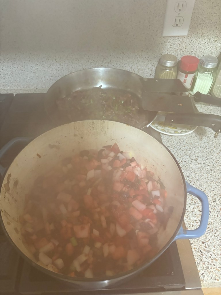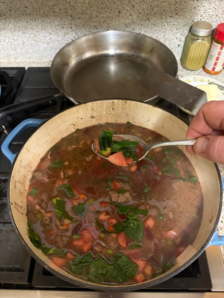 We seared some beef heart and ox tail with onion, then set them aside and stir fried all the veggies in the drippings.