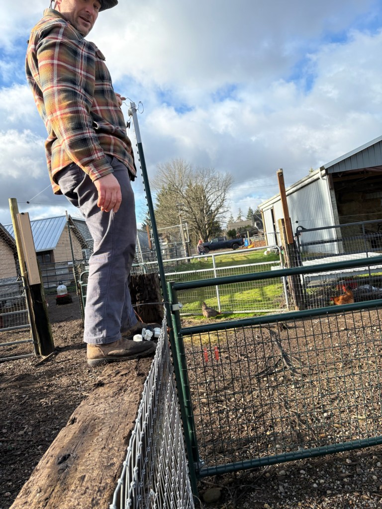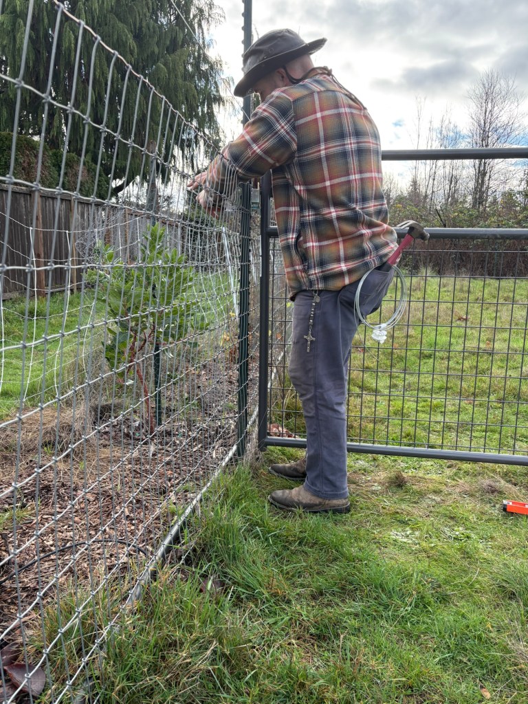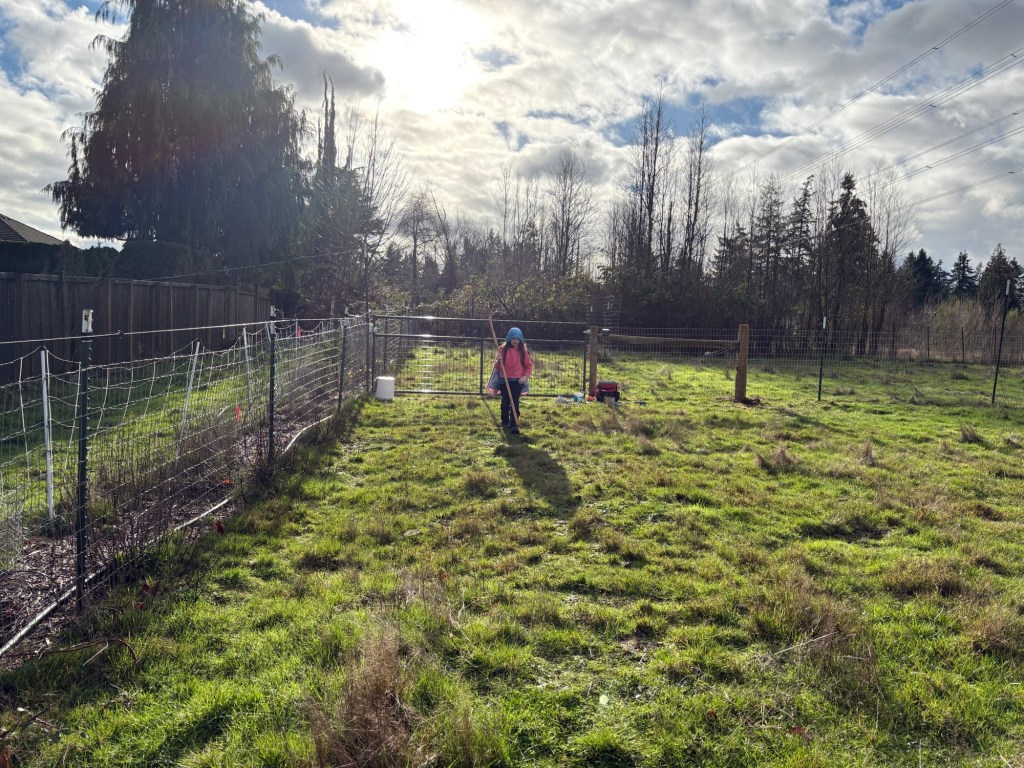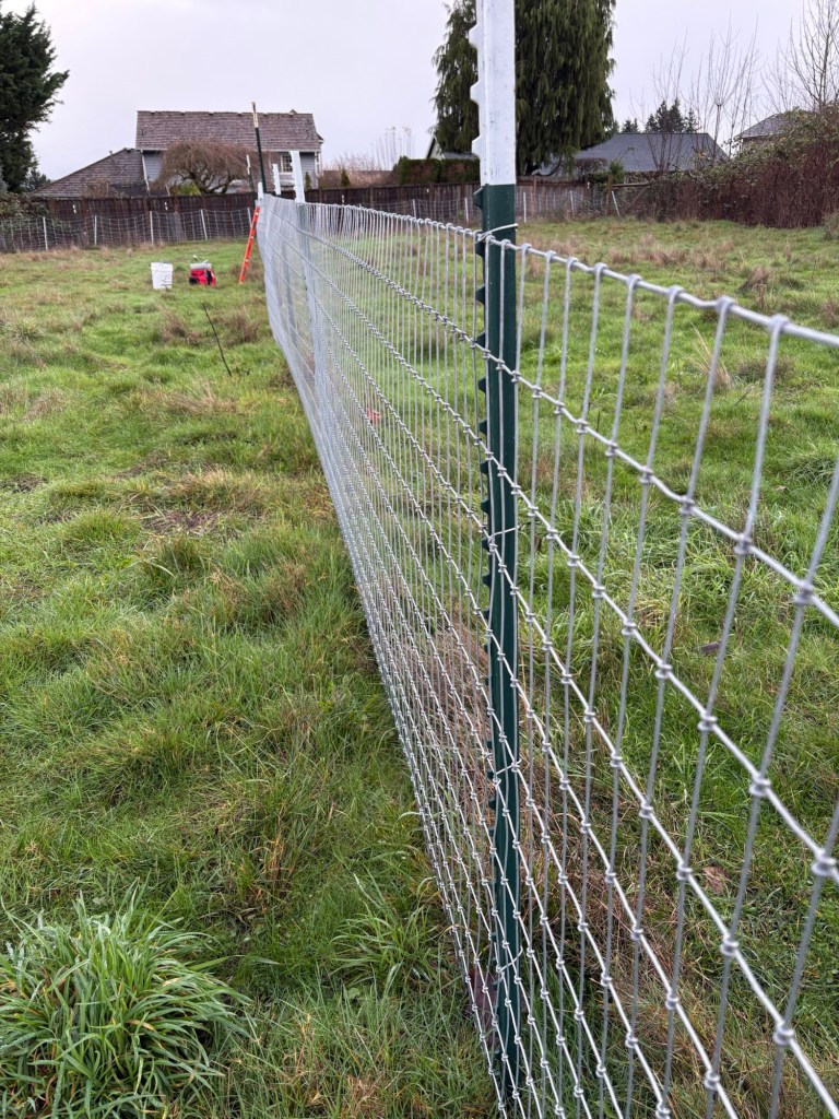 We built a fence. We got a lot of work done in a single day, but left some of the brackets unattached, but this was no big deal we came back and got 3/4 of them put in a few days later. Couldn’t quite finish before sundown and time for supper, but this was no big deal. We would just come in and put the last ones in later that week.