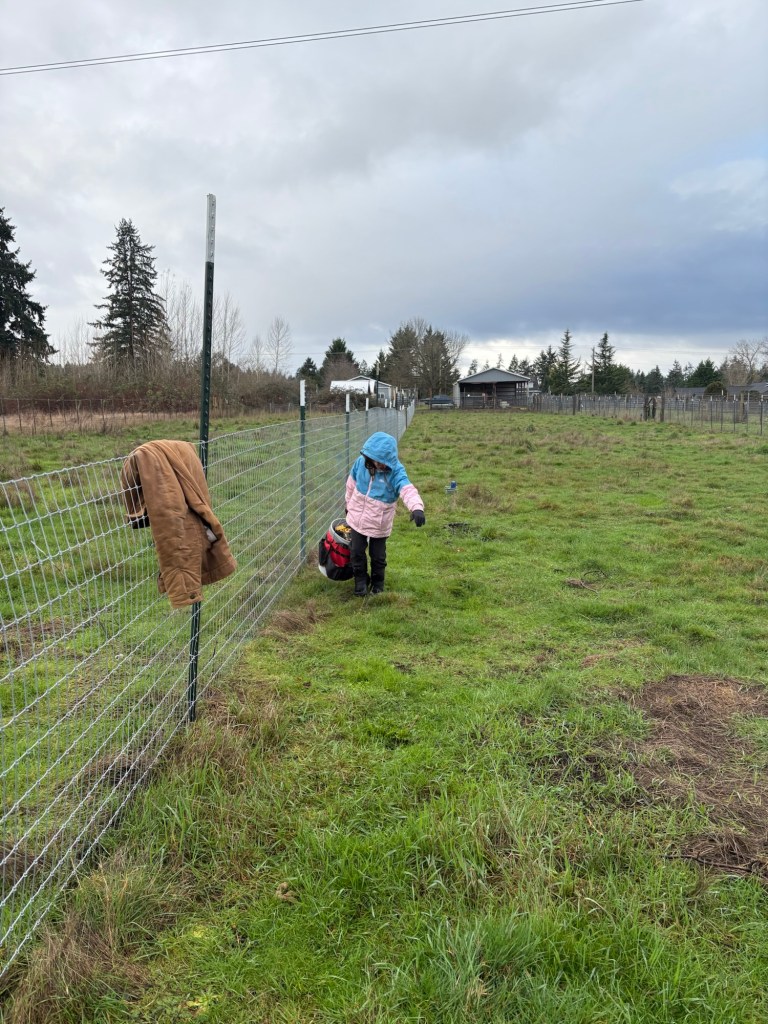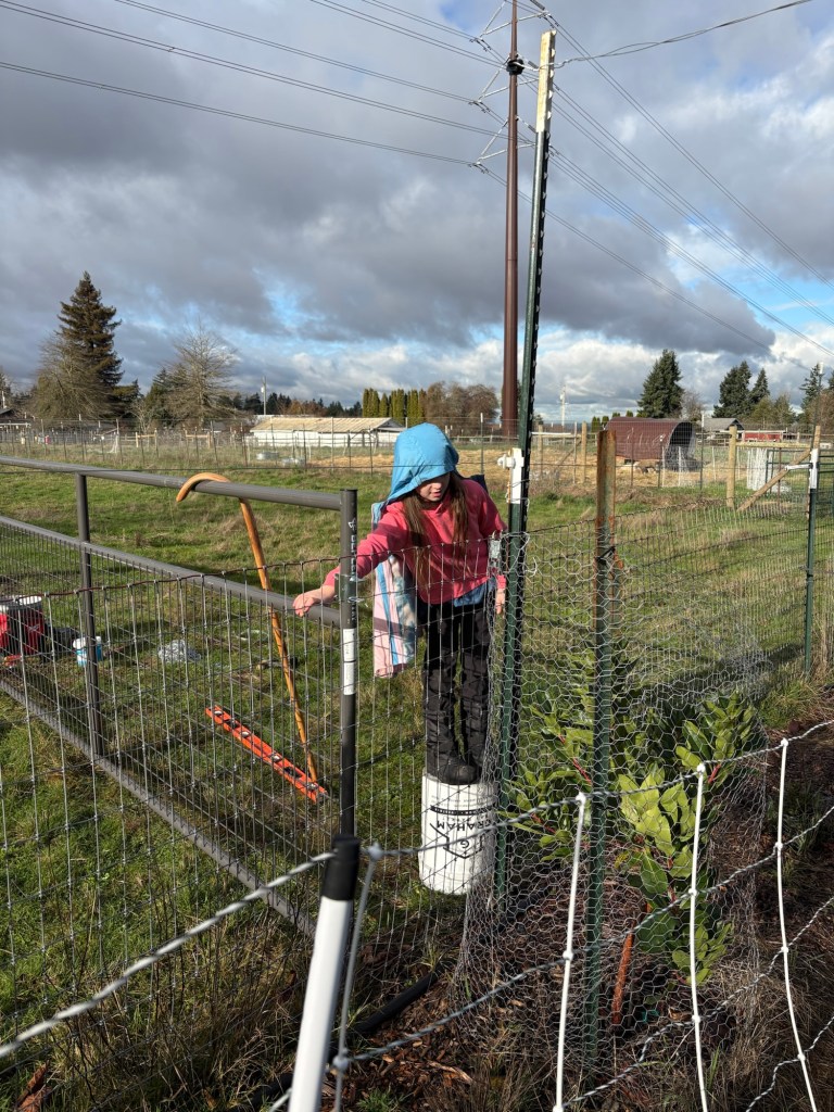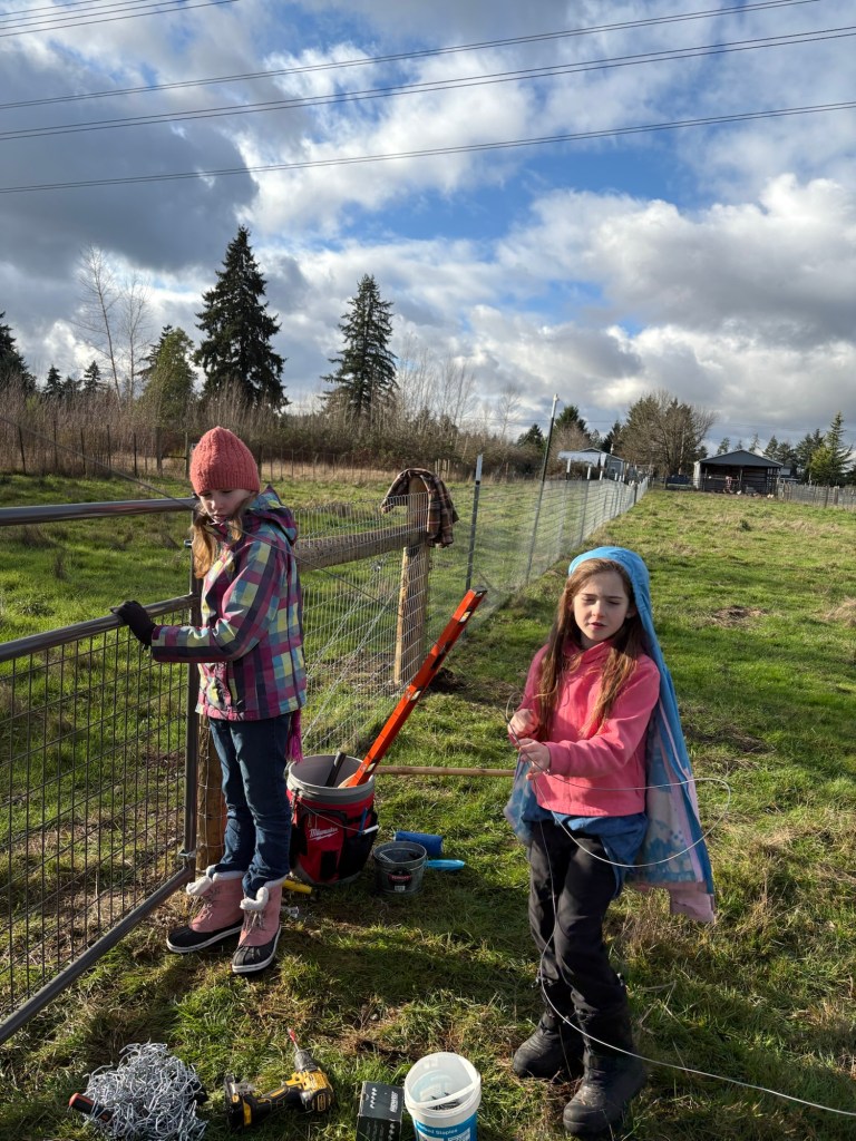 Evie and Ellie helped run the wire, and also practiced their photography.