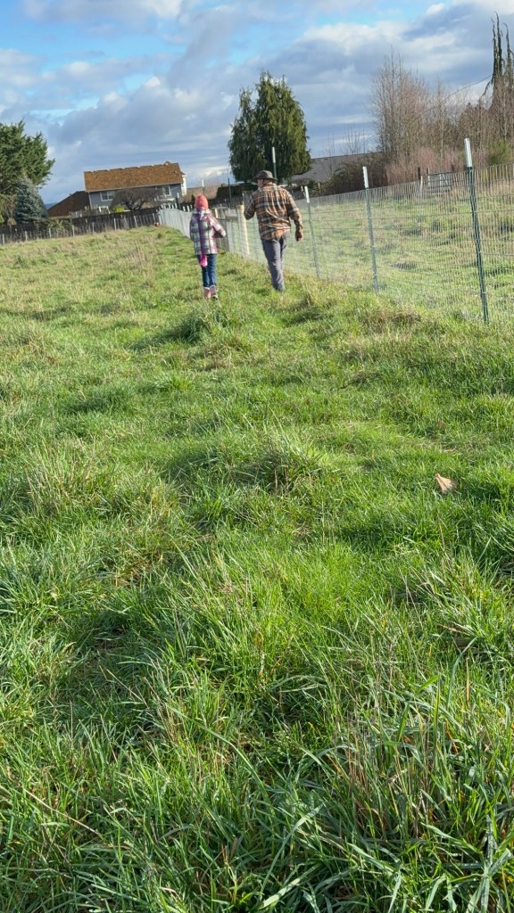 There is some grass on the laneway, they can nibble on that for a while. We are not sure how far out Iris is from calving, but we want her to have access to the barn when she does start getting ready.