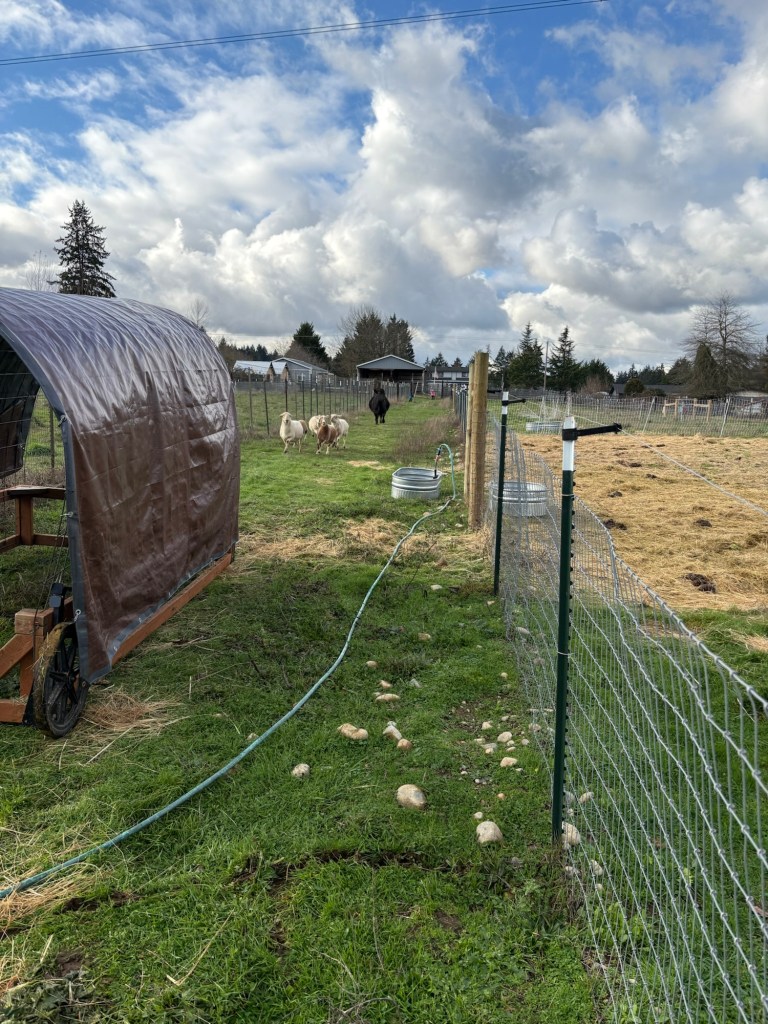 Now it is time to move the sheep and cows out of the sacrificial paddock they have been in for a month, and into the laneway.
