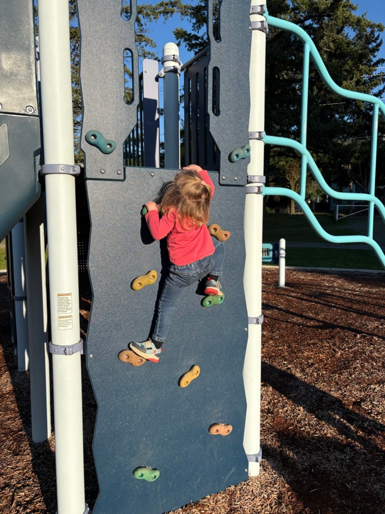 Winnie is a big girl now. She can climb this all by herself (if she has a spot. Otherwise she gets scared at the top.)