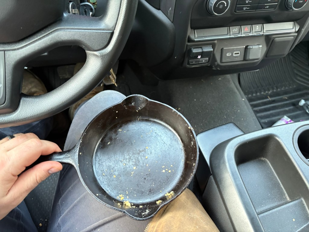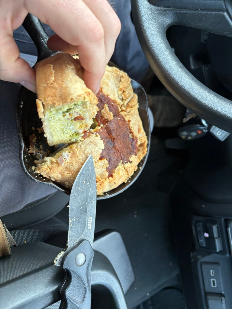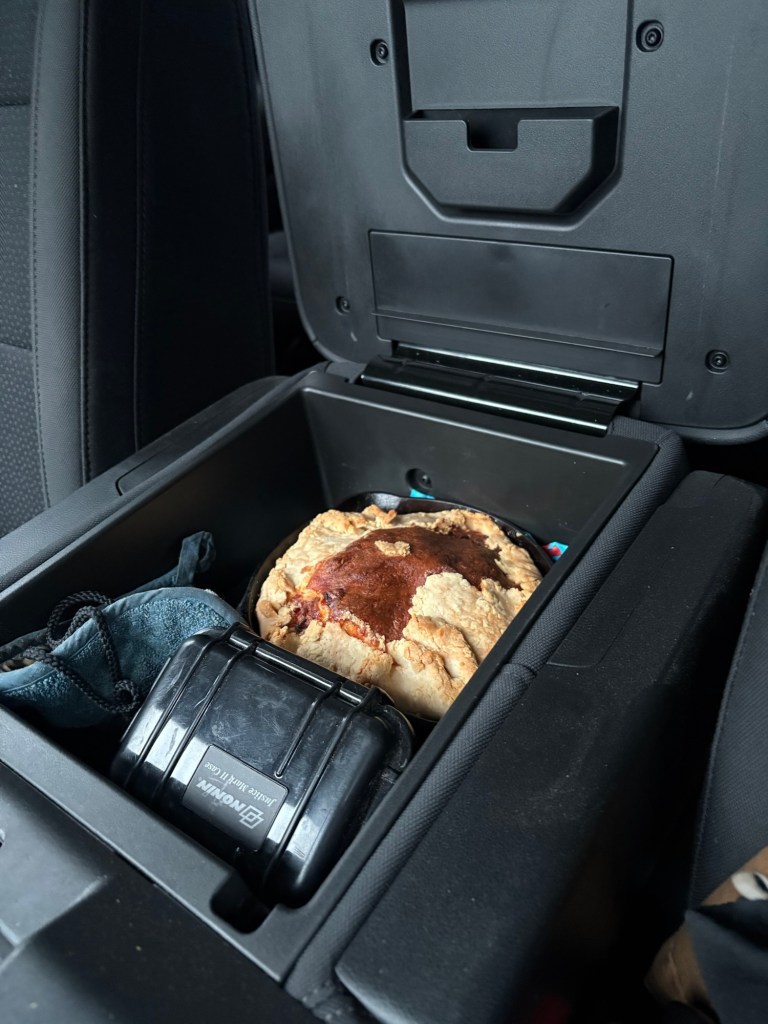 In the console of the truck it kept warm beautifully in its cast-iron pan and was the perfect eating temp after Mass.