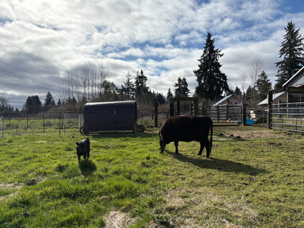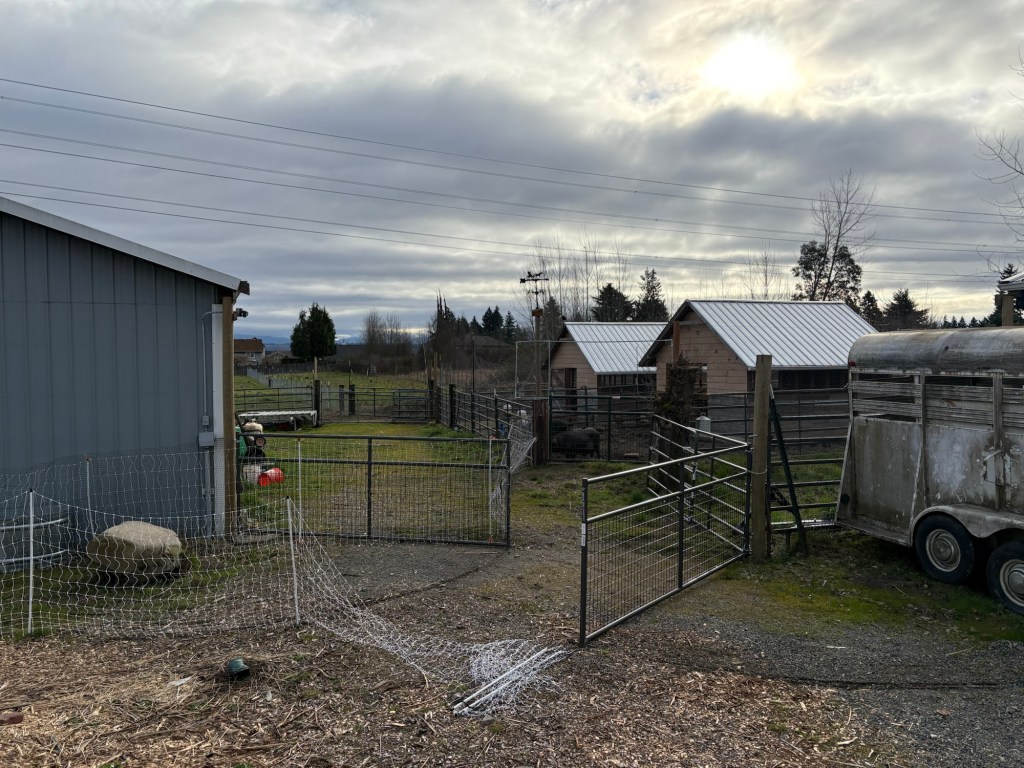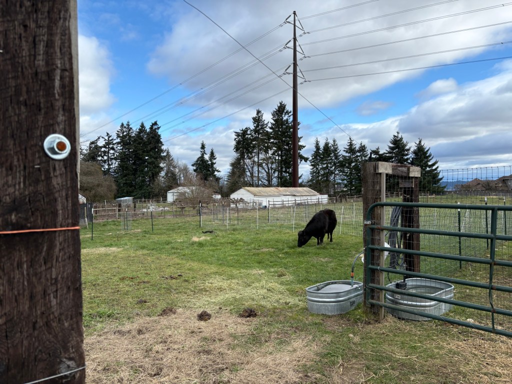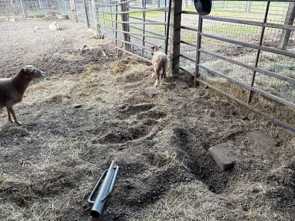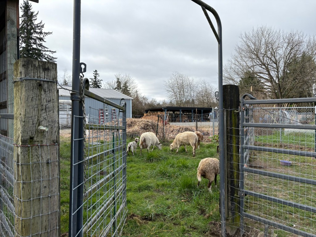 We aren’t putting her in with the sheep right now, because she was pushing the new lamb around a bit roughly (she’s a jerk when she’s in Mom mode). We also aren’t keeping them on pasture at night due to high coyote activity in the area. However, we are going to have to take that chance eventually. They can’t live in the barn their whole lives.