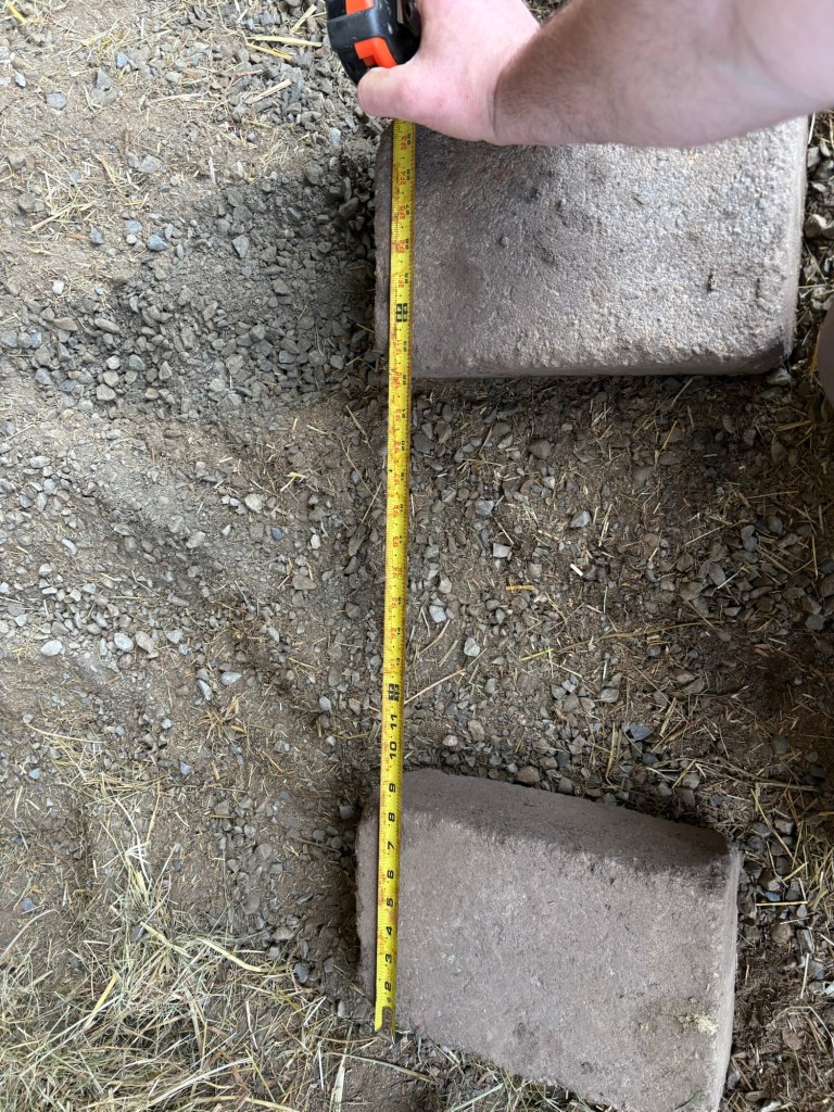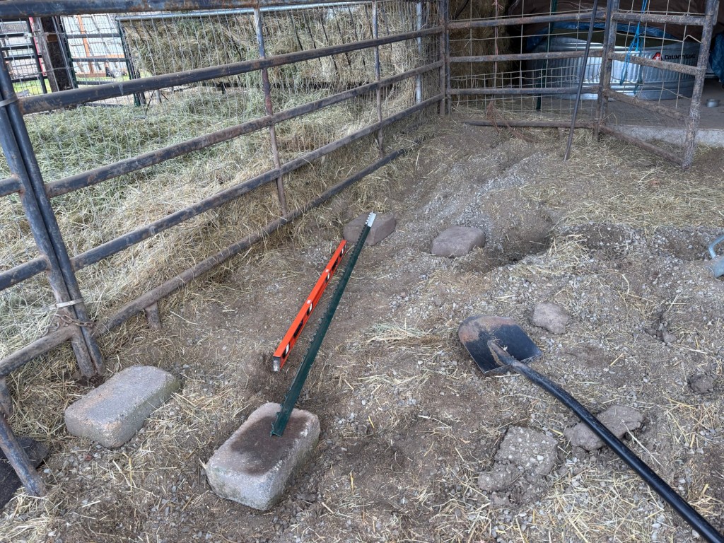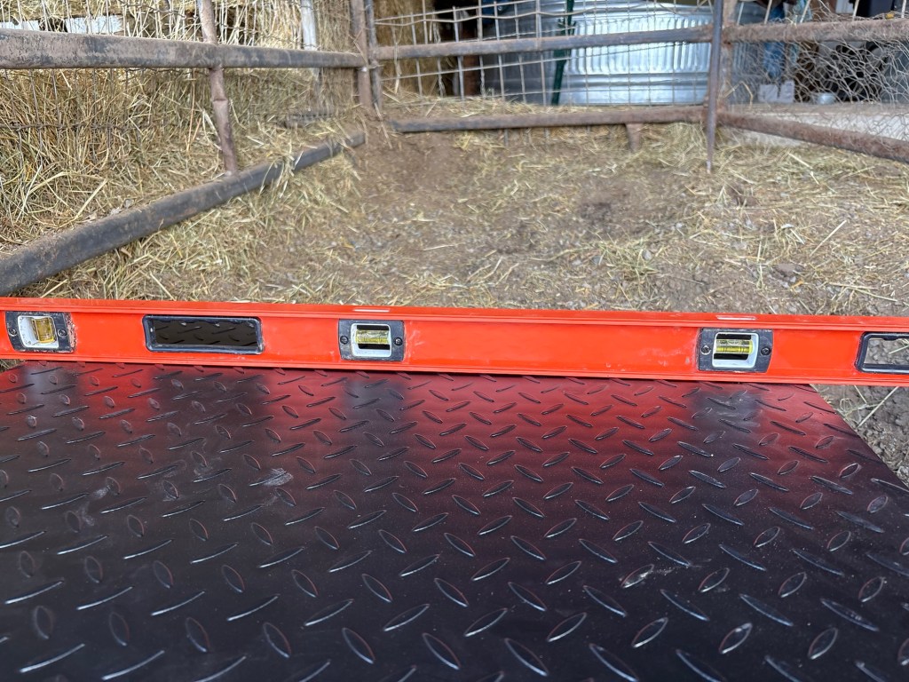 The last project was installing the livestock scale. Ideally this would sit on a flat cement pad, but we don’t have time or money to put one in right now. Instead, I set it on four footer stones.