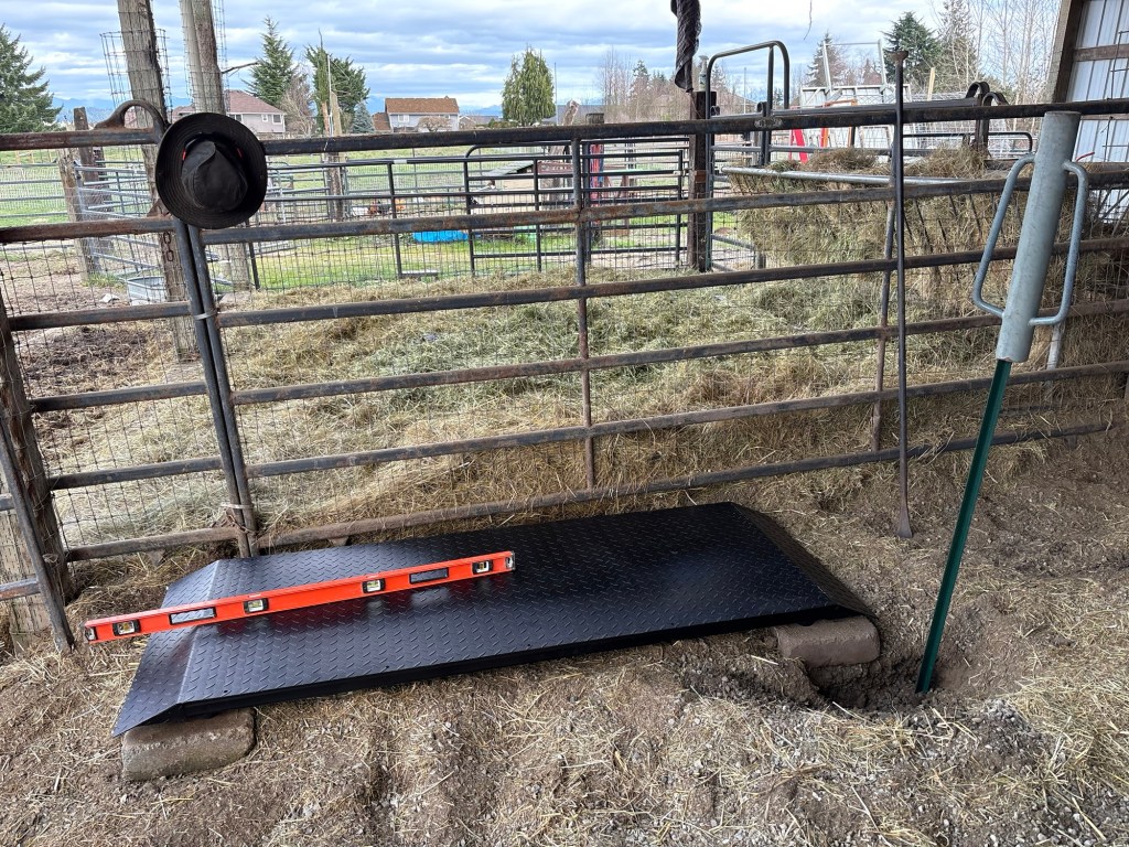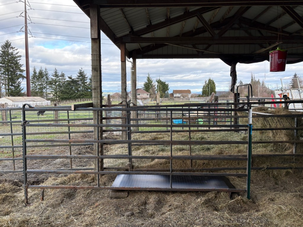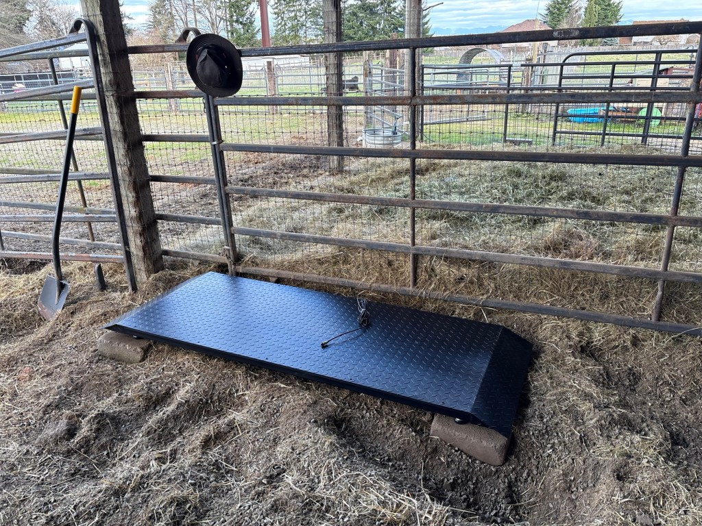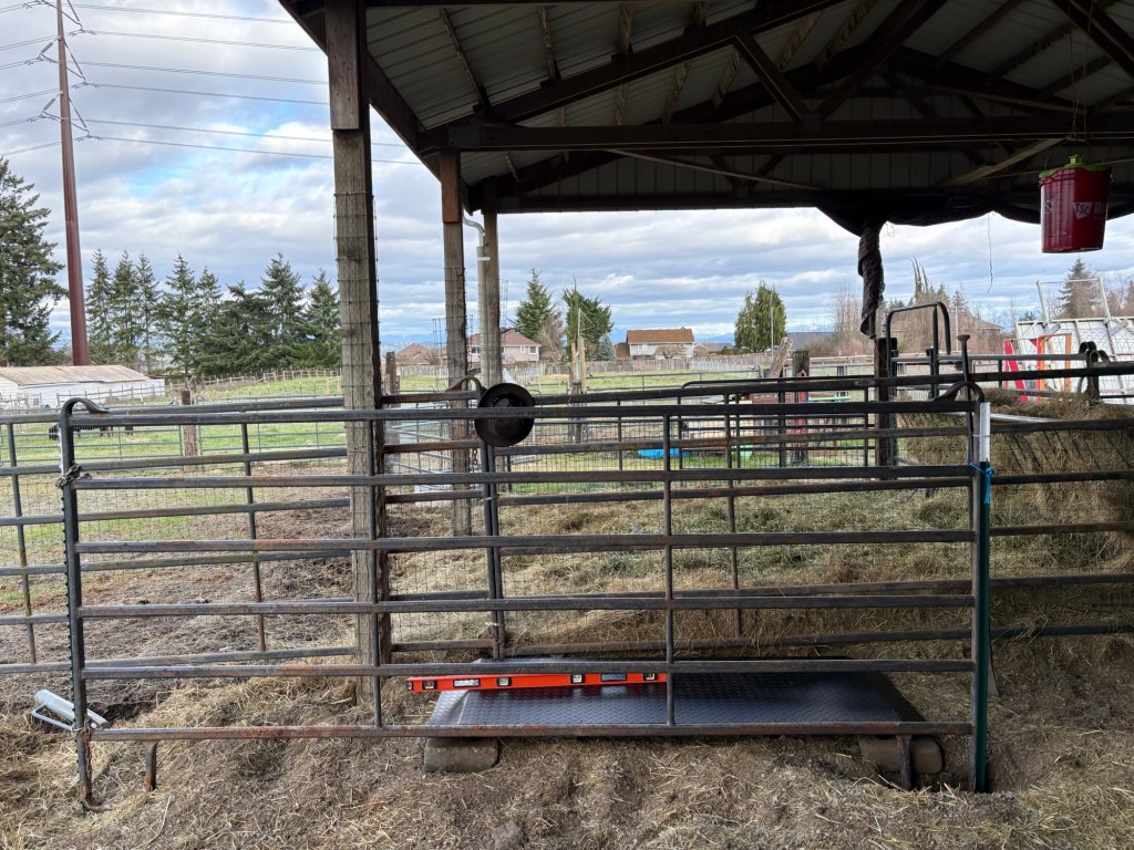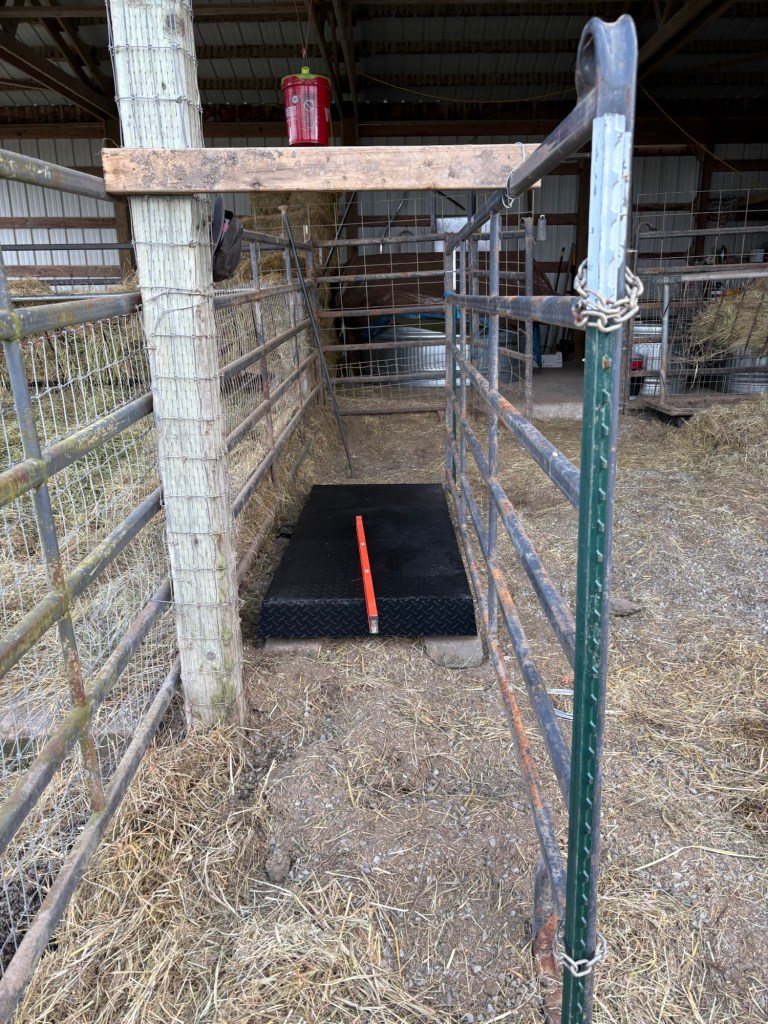 Then I installed a horse panel to funnel the critters onto the scale.