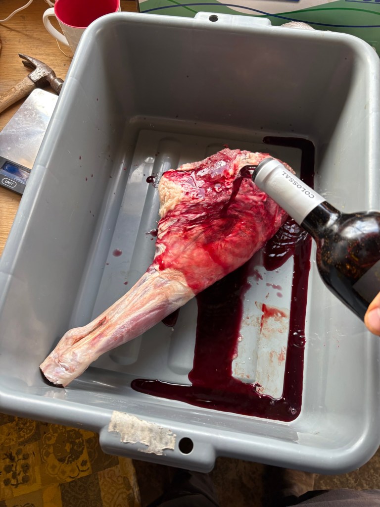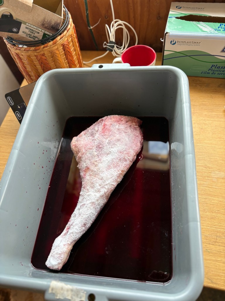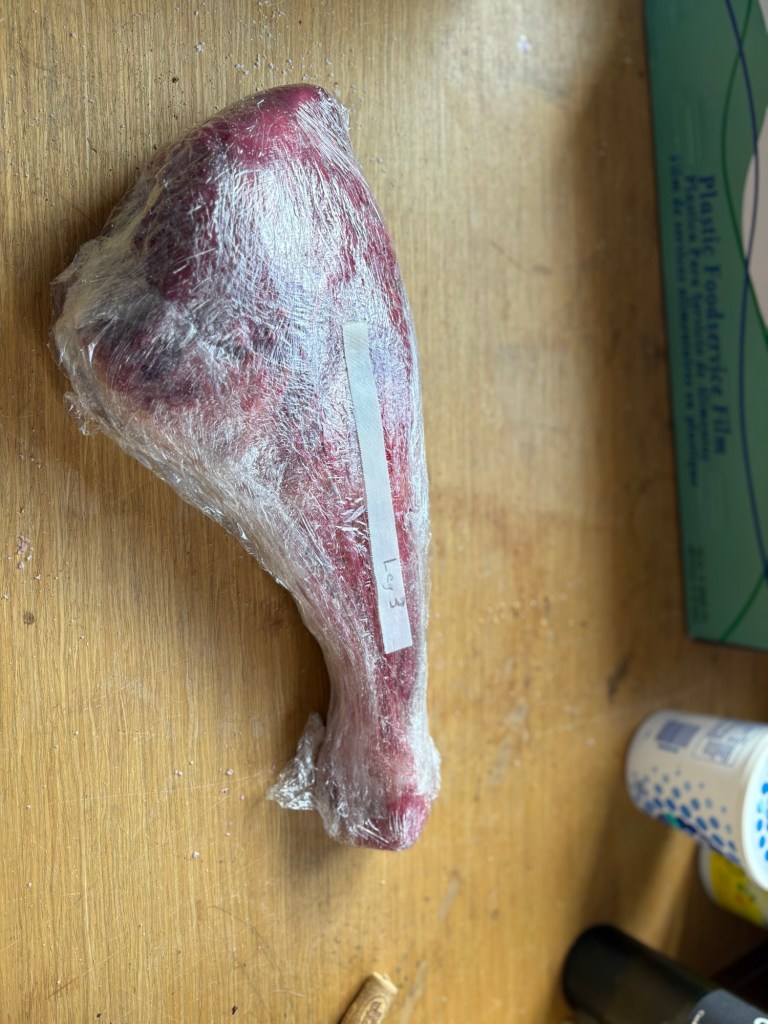 Forgot to weigh leg #2 before I wrapped it, in part of what was left from last year’s recipe #2.