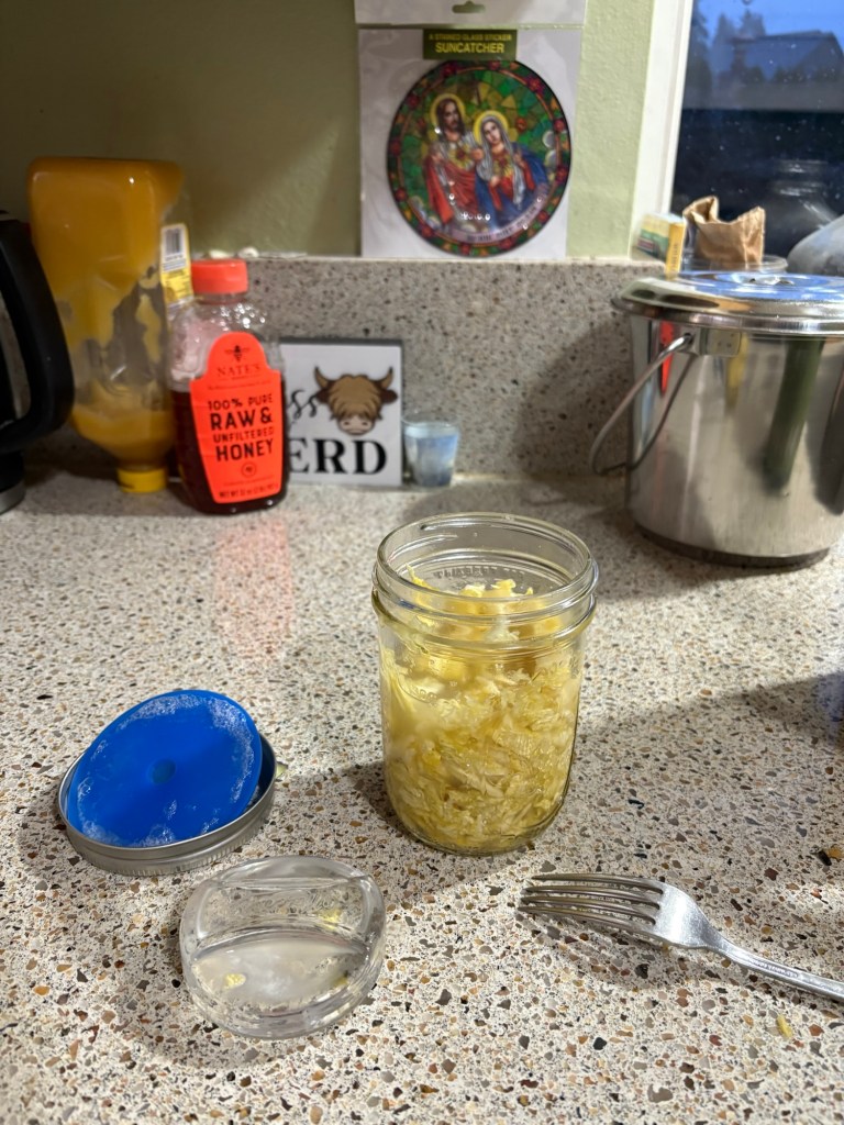 But our sauerkraut was so yummy I ate almost a pint of it with a fork.